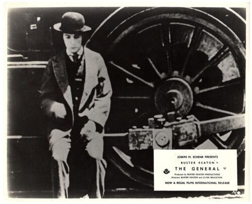 The General 1926 Buster keaton sits near wheel of W&ARR locomotive 8x10 photo