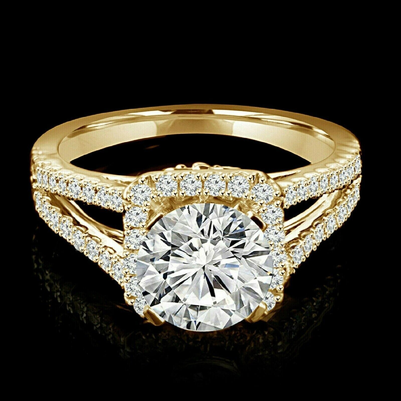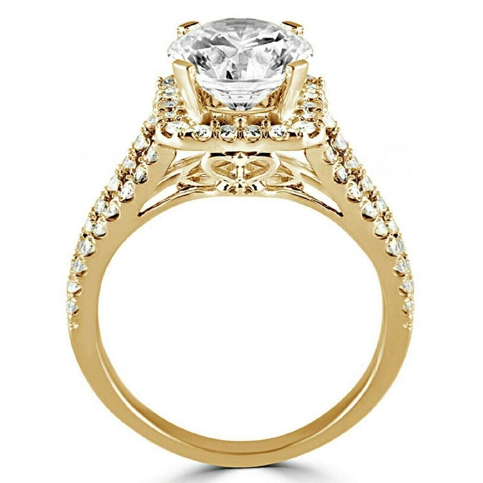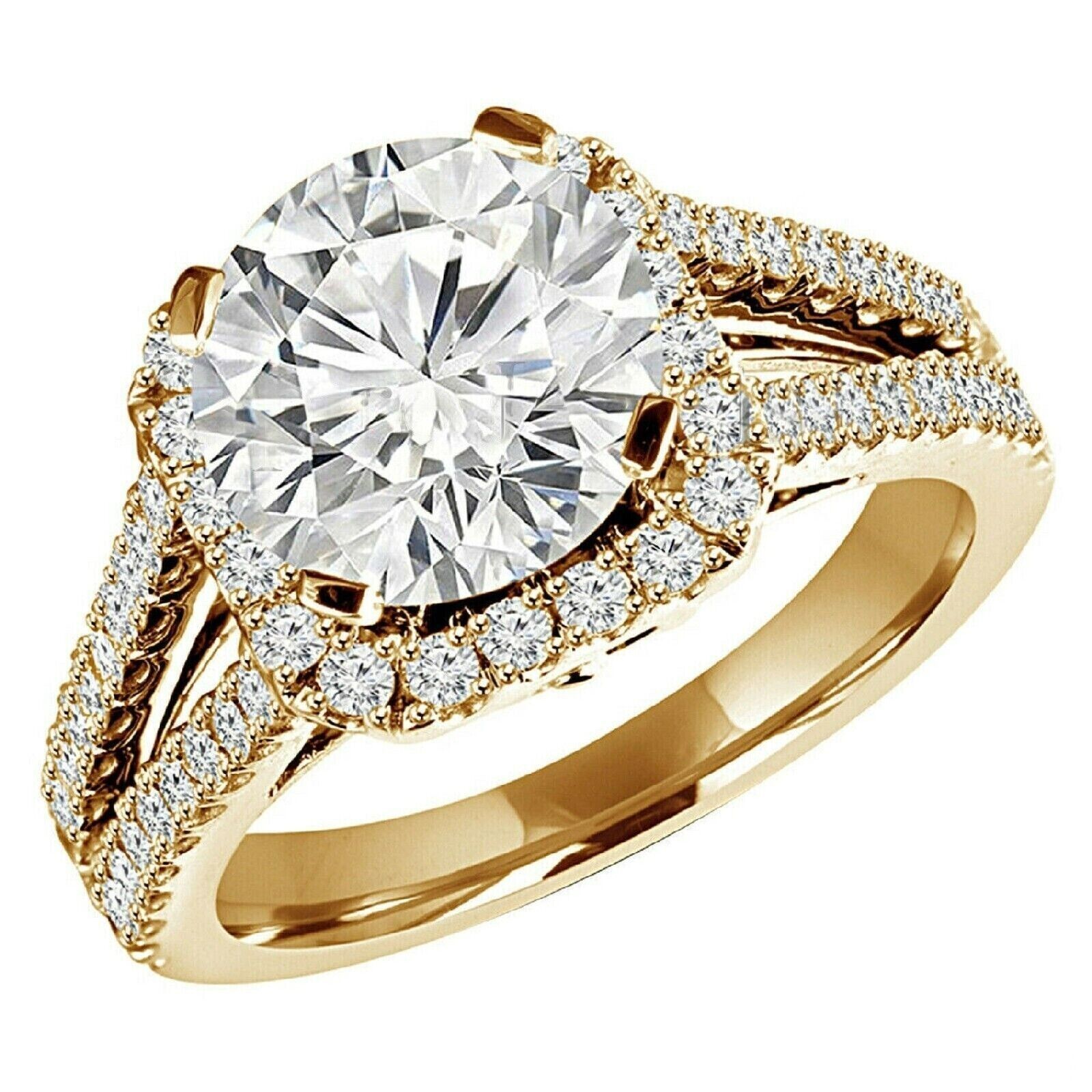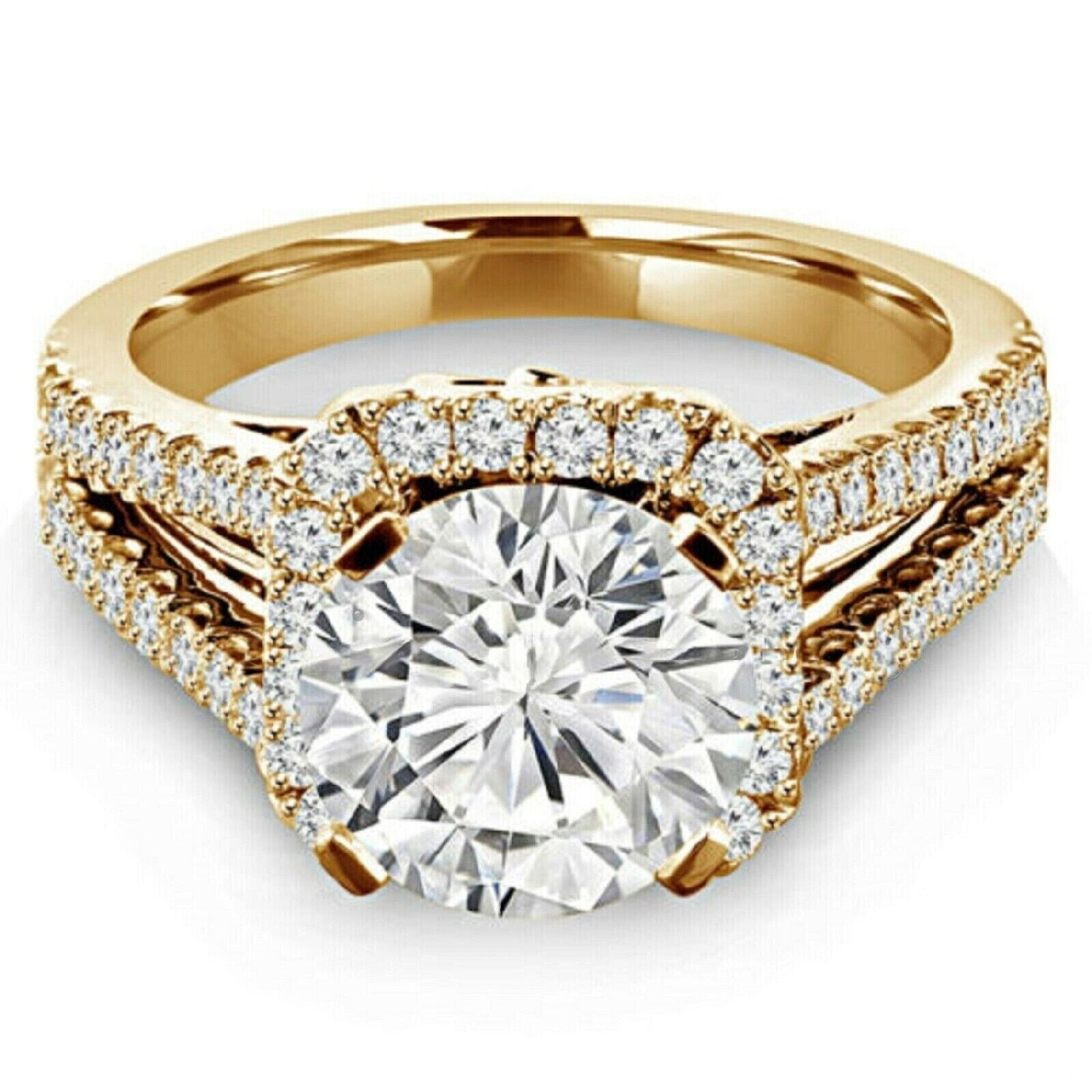 3.24Ct Round Cut MOISSANITE Engagement Wedding Ring 14k Yellow Gold Plated