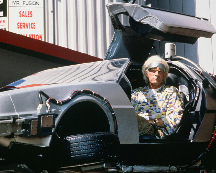 BACK TO THE FUTURE CHRISTOPHER LLOYD IN DELOREAN CAR CLASSIC 8X10 PHOTO
