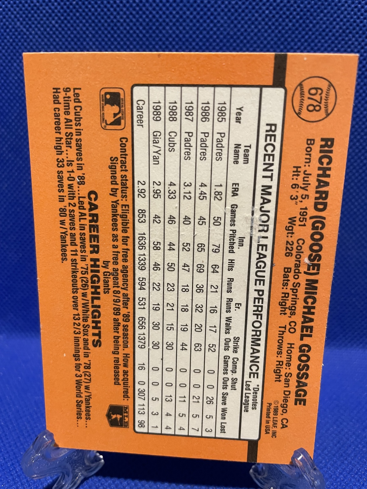 Goose Gossage # 678 1990 Donruss Baseball Card Error