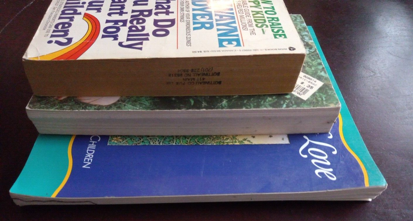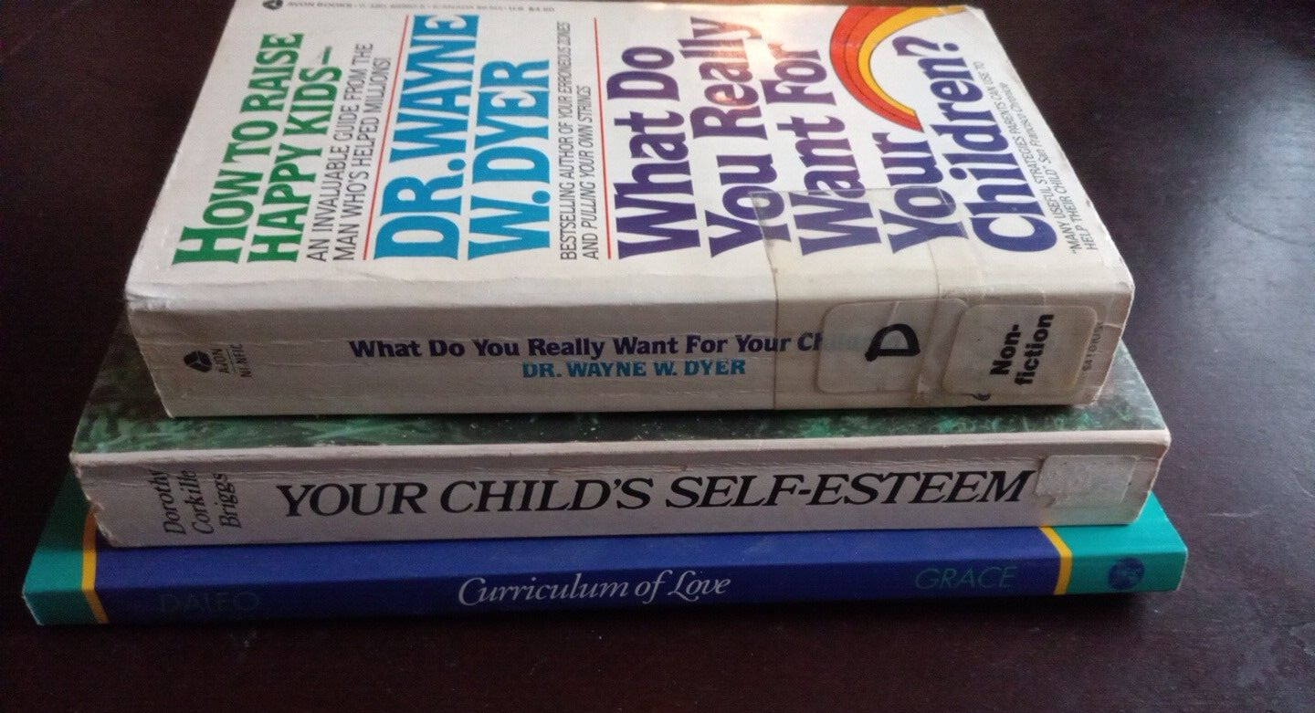 Usual wear for vintage paperbacks, One is ex-library but still readable and together with tape on spine. Price sticker on cover of Your Childs Self-esteem, and inscription in front of Curriculum of Love. I see no other writing throughout, all text is readable, books are solid. Lots of good information.