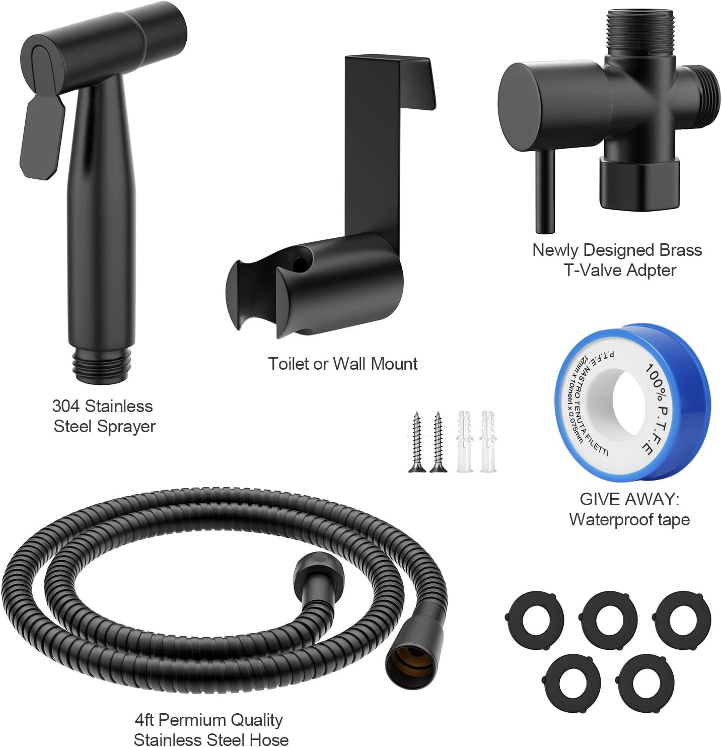 Bidet Sprayer For Toilet, Stainless Steel Handheld Sprayer Attachment, Black.