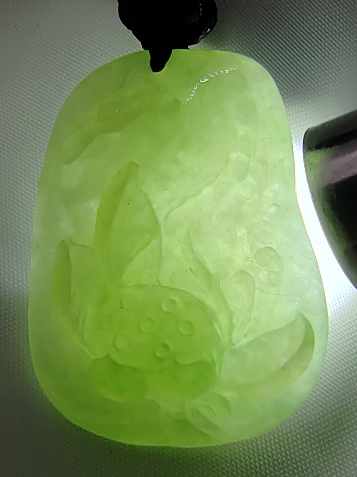 This is an exceptionally rare and meticulously hand-carved natural jadeite pendant. It belongs to the icy translucent light green variety of jadeite, and has undergone delicate carving techniques to transform its fine jadeite texture into a exquisite pendant featuring a dragonfly and lotus flower. This exquisite piece comes with a certificate verifying its status as Grade A natural jadeite. Its dimensions are approximately 31.00mm 23.80mm 10.90mm, with a weight of 10.66 grams, equivalent to 53.30 carats. Jadeite, as a precious gemstone, is highly sought after by collectors due to its rarity. This piece is not only a masterpiece of carving art but also a crystallization of jewelry craftsmanship. Dragonflies and lotus flowers hold significant symbolic meanings in Chinese culture. Dragonflies symbolize vitality, courage, and happiness, while lotus flowers represent purity, elegance, and auspiciousness. These profound symbols imbue this pendant with deeper cultural connotations, making it more than just an artistic creation but also a spiritual emblem.
