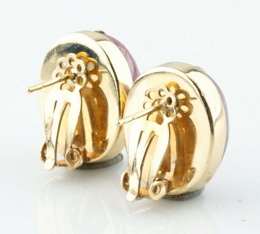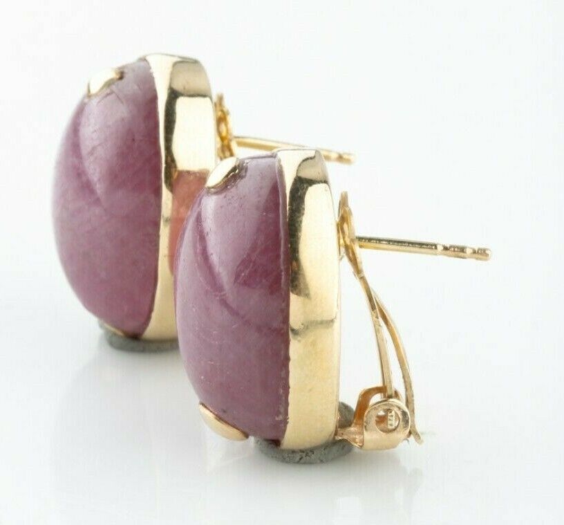 Authenticity Guarantee Unique 14k Yellow Gold 36 Cts Ruby Cabochon Huggie Ea...