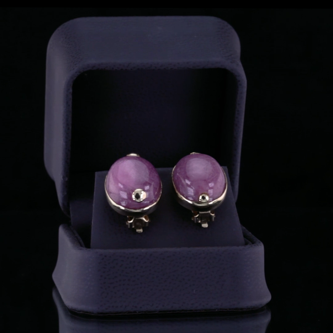 Unique 14k Yellow Gold 36 Cts Ruby Cabochon Huggie Earrings w/ Certificate
