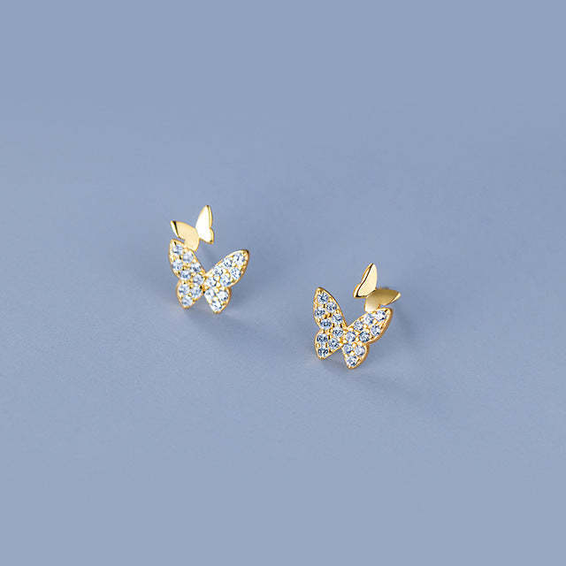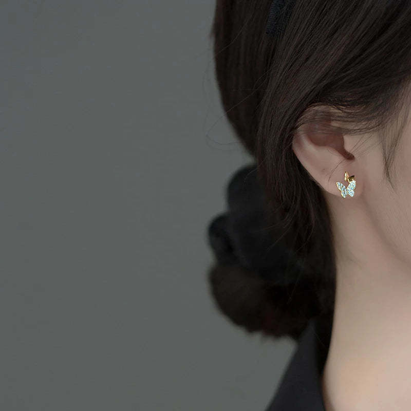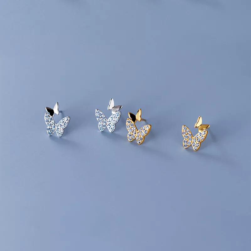 Anyco Earrings Fashion Gold 925 Sterling Silver Romantic Cute Blue Zircon Double