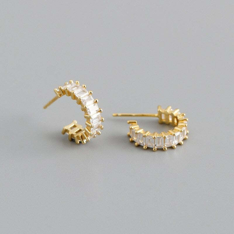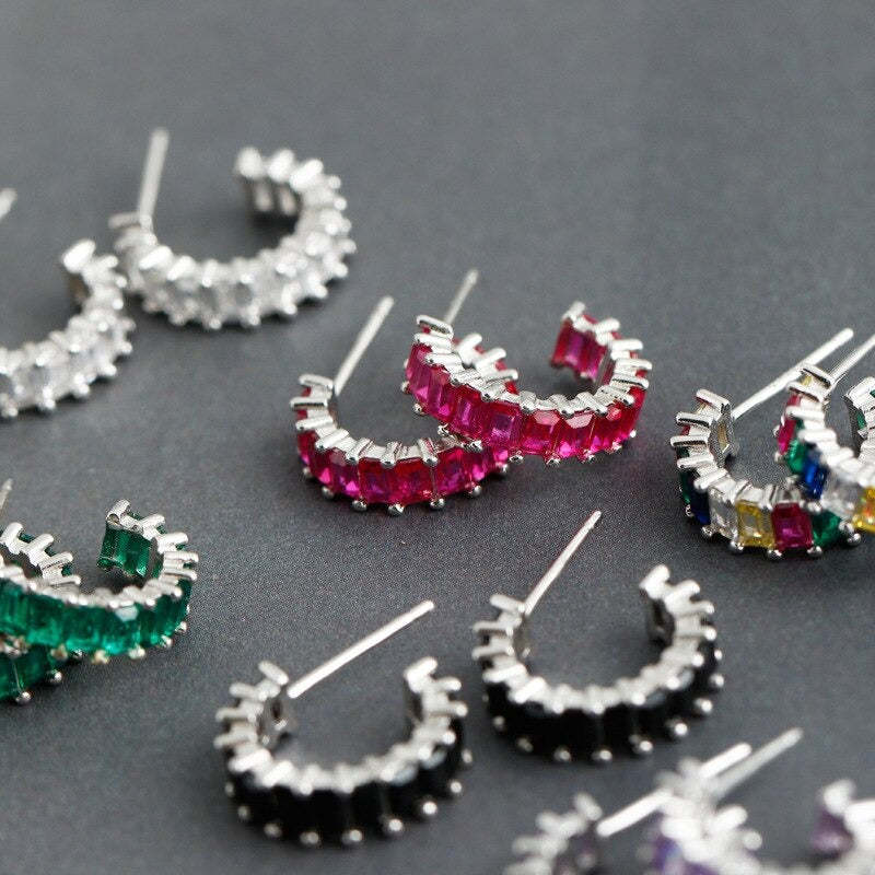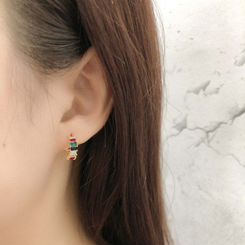 Anyco Earrings Stud Colorful Square Rainbow Zircon Arc-Shaped Bohemian Charm