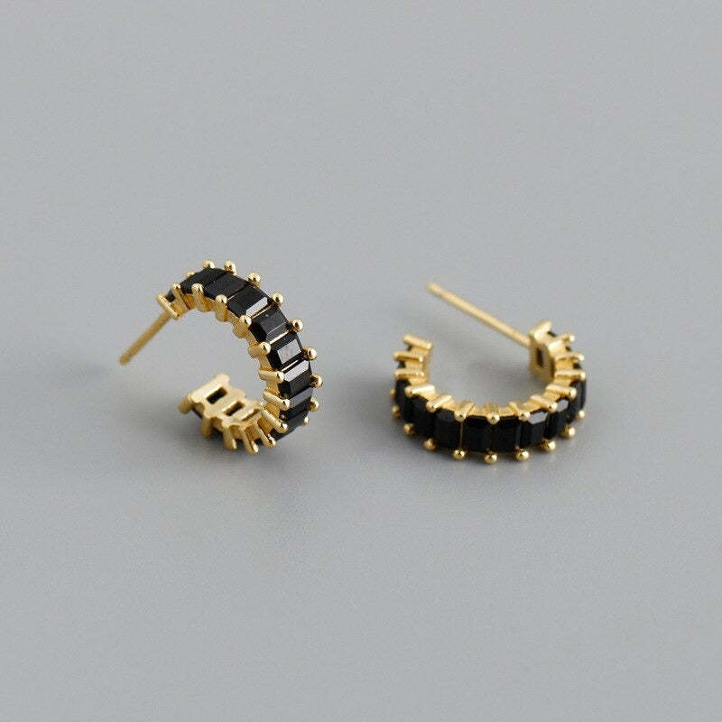 Anyco Stud Earrings Colorful Square Rainbow Zircon Arc-Shaped Bohemian Charm