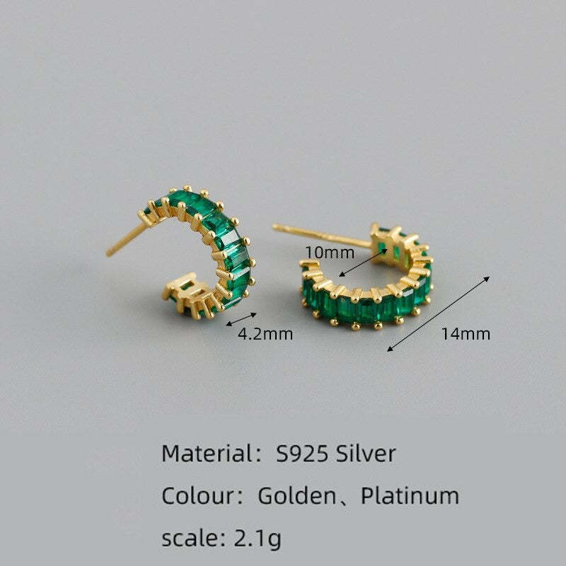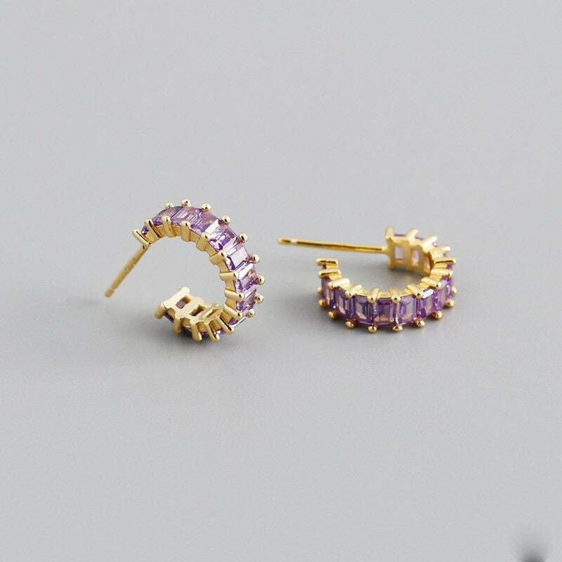 Anyco Earrings Stud Colorful Square Rainbow Zircon Arc-Shaped Bohemian Charm