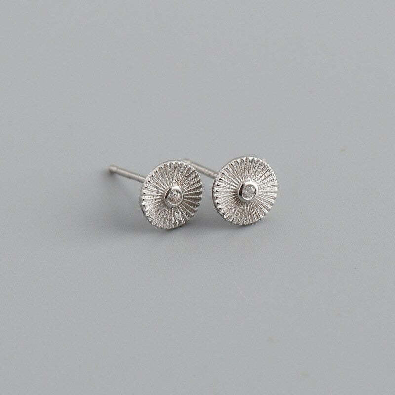 Anyco Earrings Fashion Stud Simple Round Sun Pattern Mini Small Sterling Silver