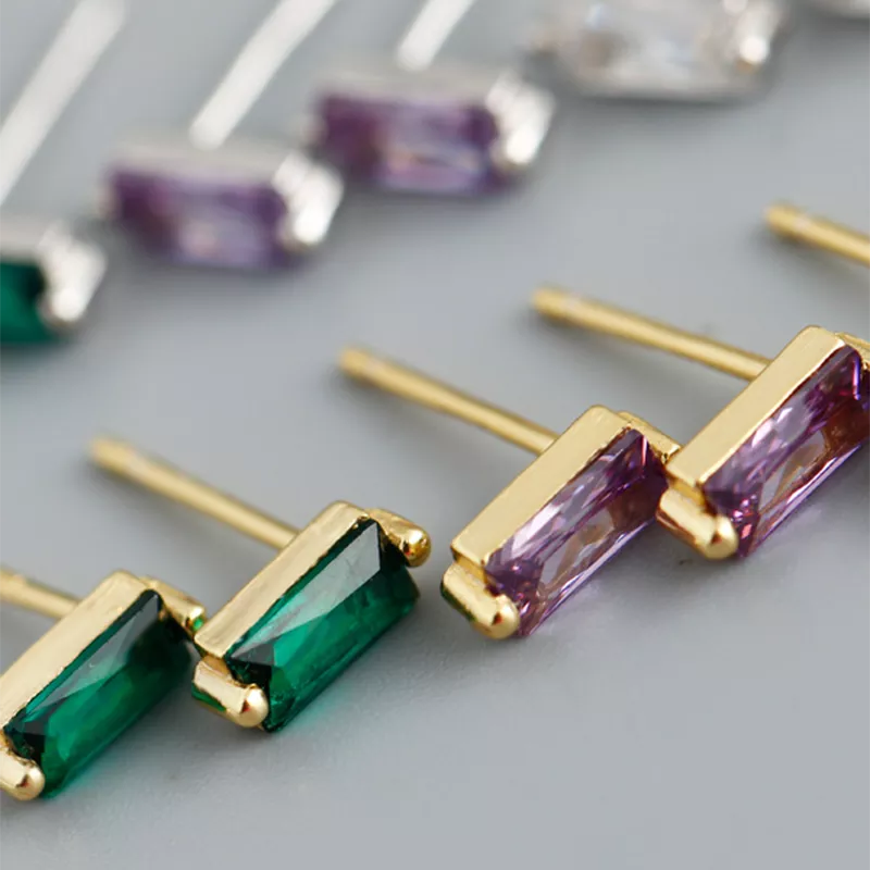 Anyco Earrings Stud Sweet Luxury Geometric Shiny Colourful Zircon Gold Charms