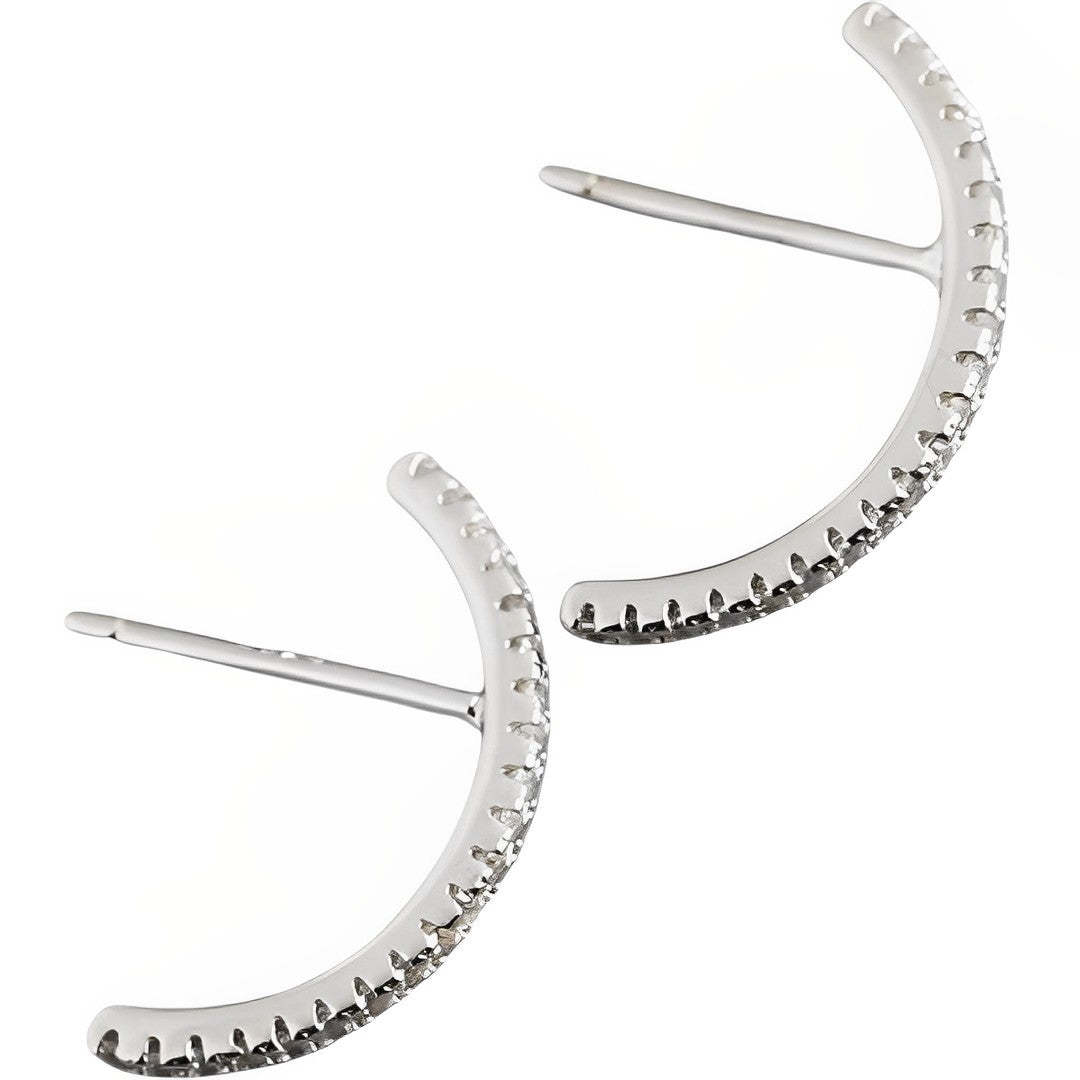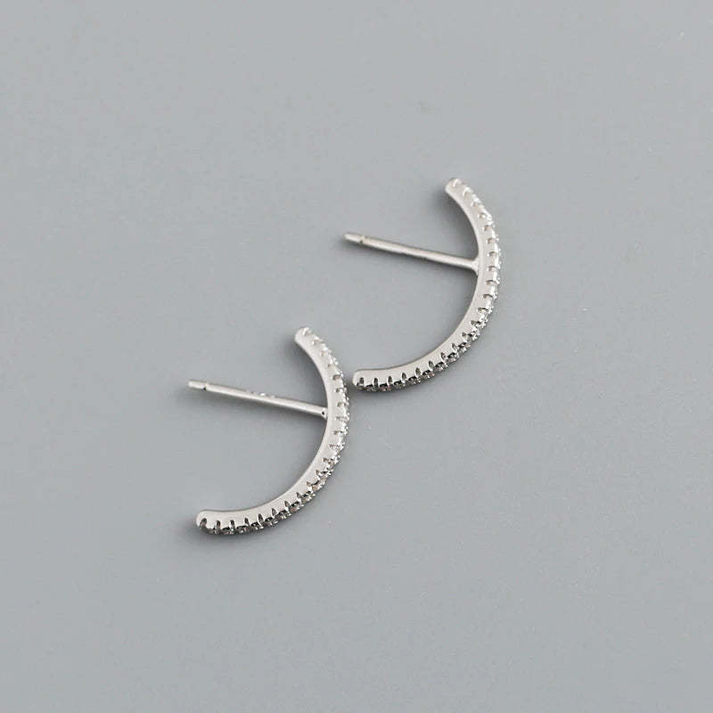 Anyco Earrings Sterling Silver Chic Line Zircon Curved Stud For Women