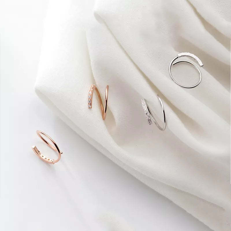 Anyco Earrings Fashion Gold 925 Sterling Simple Spiral Wave Zircon Unique Stud