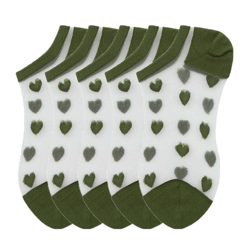 Anysox 5 Pairs Army Green Size 5-9 Socks Heart Tull Glass Silk Design