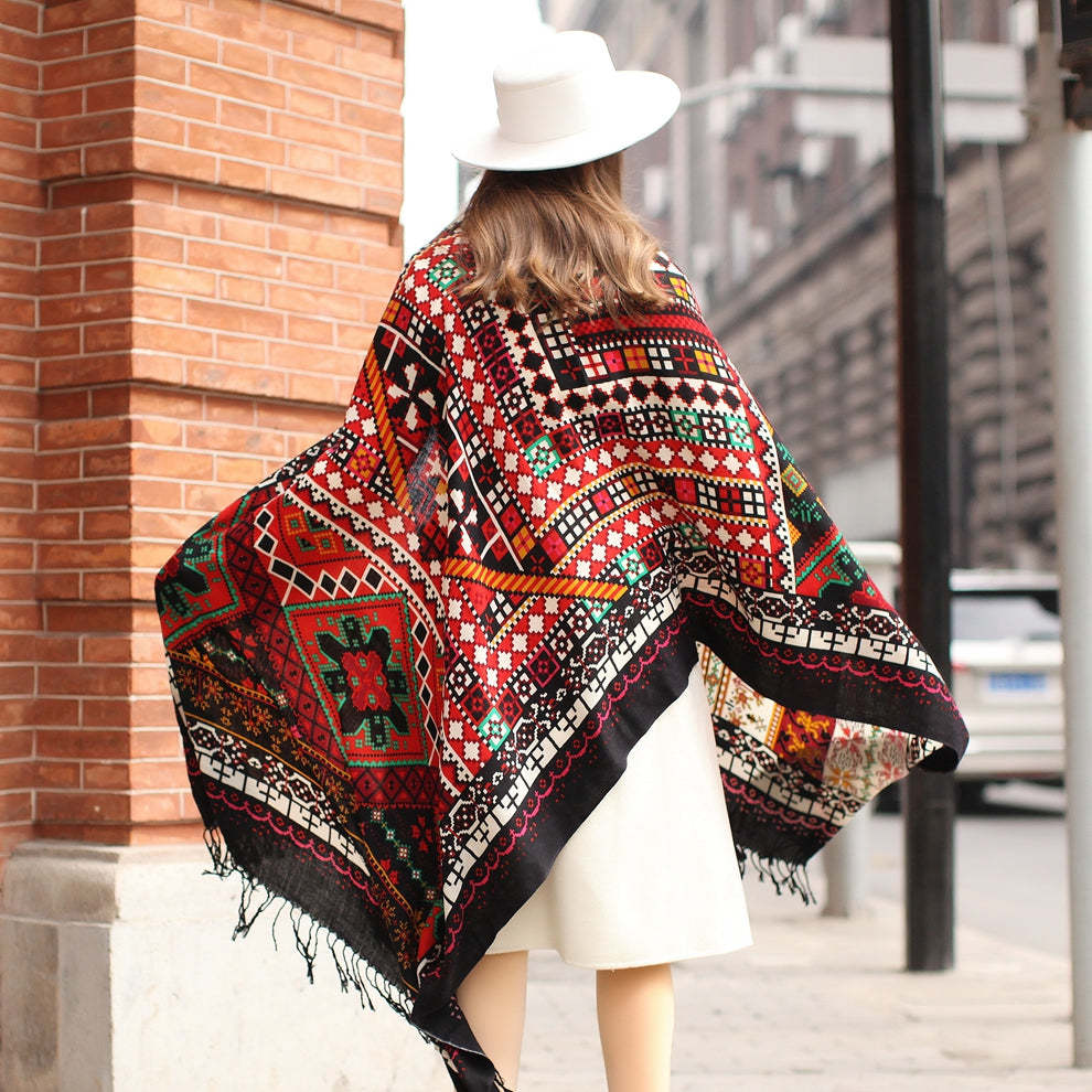 Anyyou Scarf 100% Pure Merino Wool Red Stained Pattern Poncho Winter Large