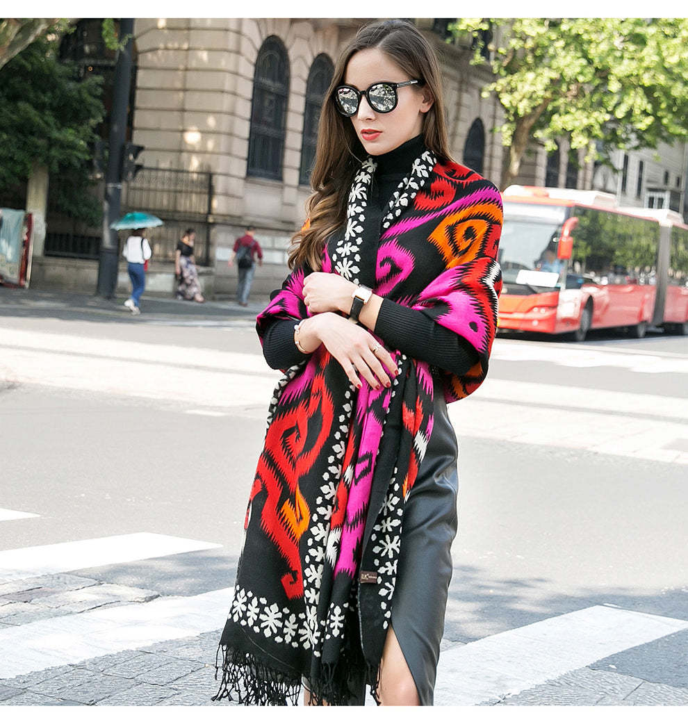 Anyyou Scarf 100% Pure Merino Wool Red Tiki Pattern Stylish Poncho Winter Large