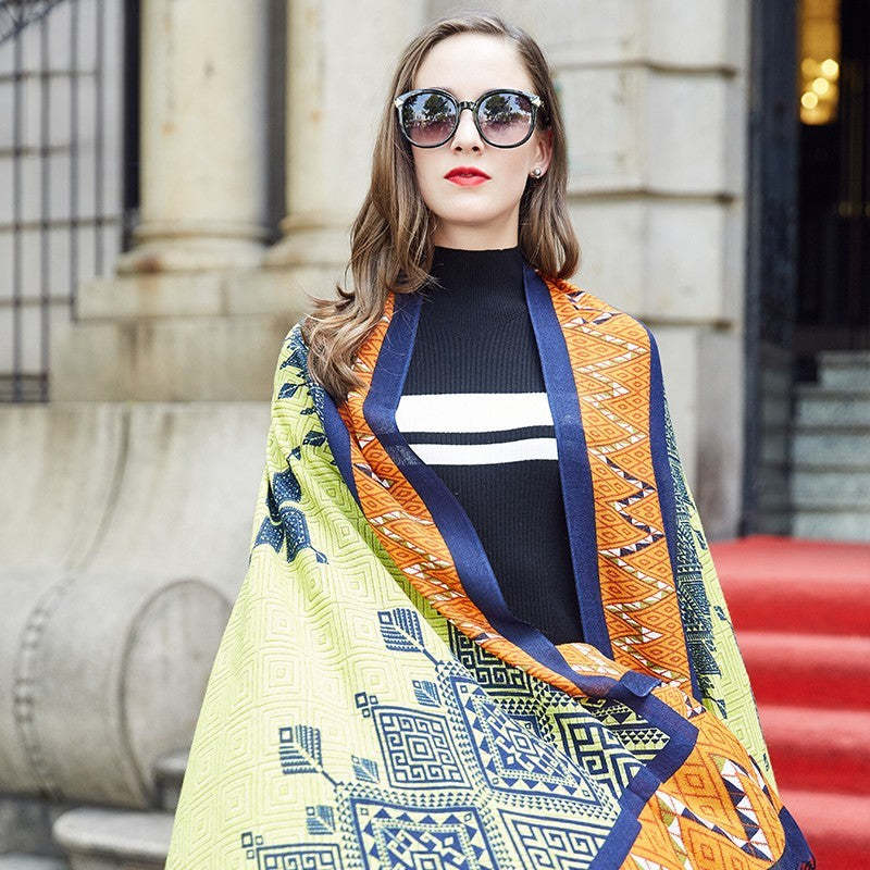Anyyou Scarf 100% Pure Merino Wool Green Facet Pattern Stylish Poncho Winter