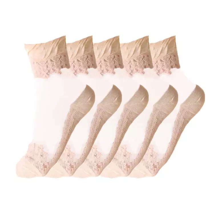 Anysox 5 Pairs Size 5-9 Fashion Socks Summer Lace Embroidery Breathable Silk