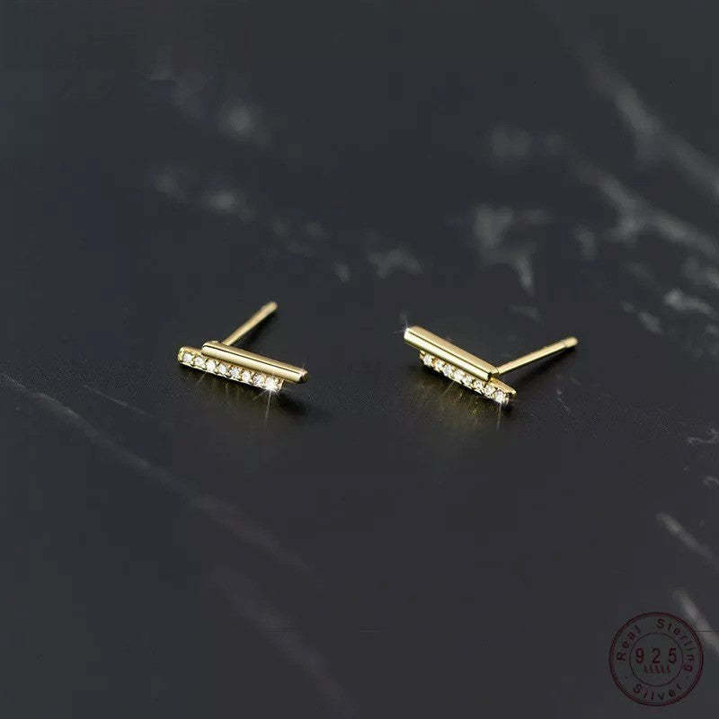 Anyco Earrings Fashion Gold Strip Shiny Zircon Small Stud Simple Unique Elegant