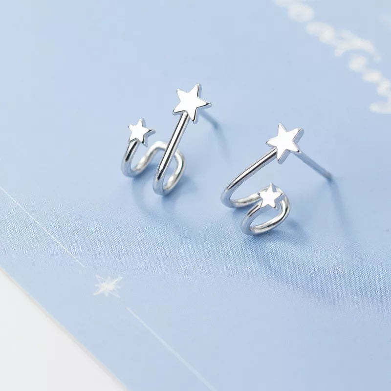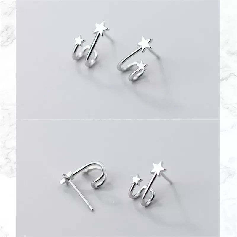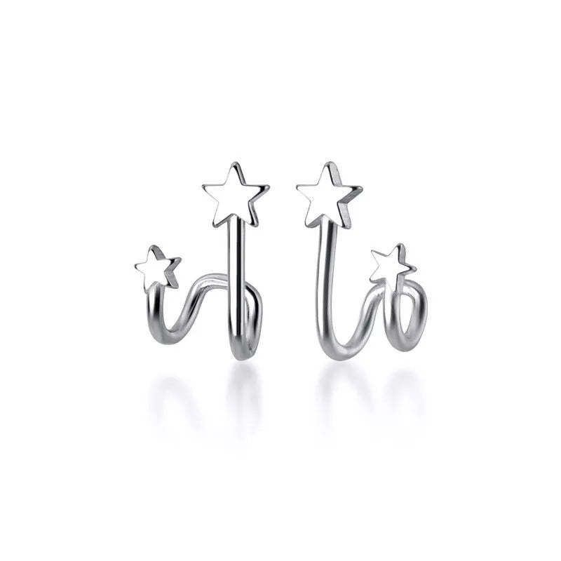 Anyco Fashion Earrings Real Genuine Sterling Silver Double Star Geometric Studs