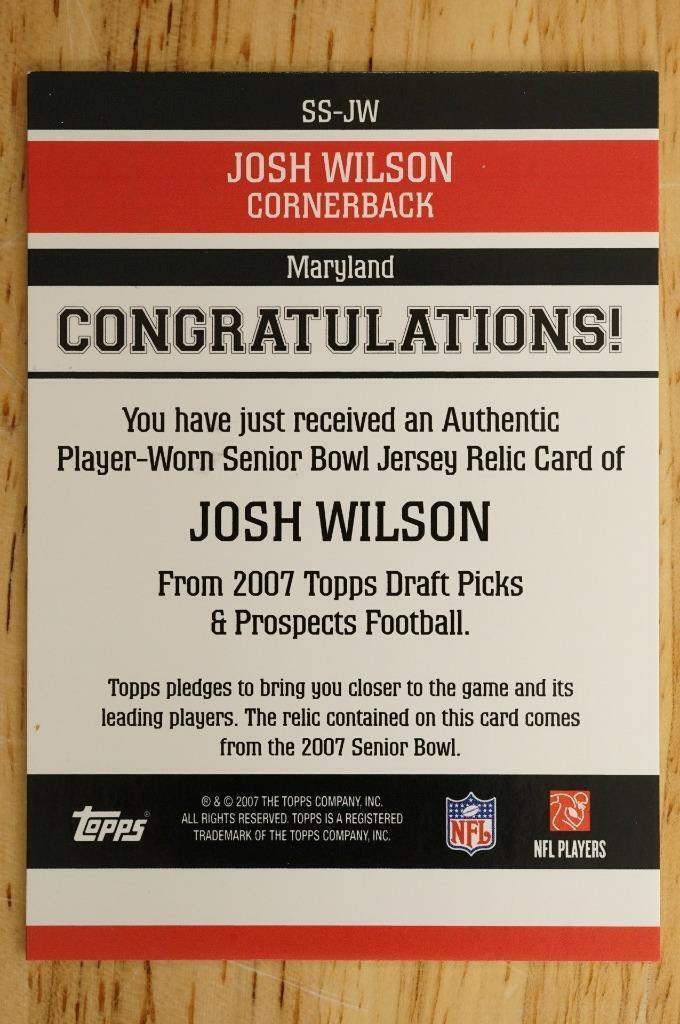 JOSH WILSON 2007 Topps DPP SS-JW Senior Bowl Jersey Relic Maryland Terrapins