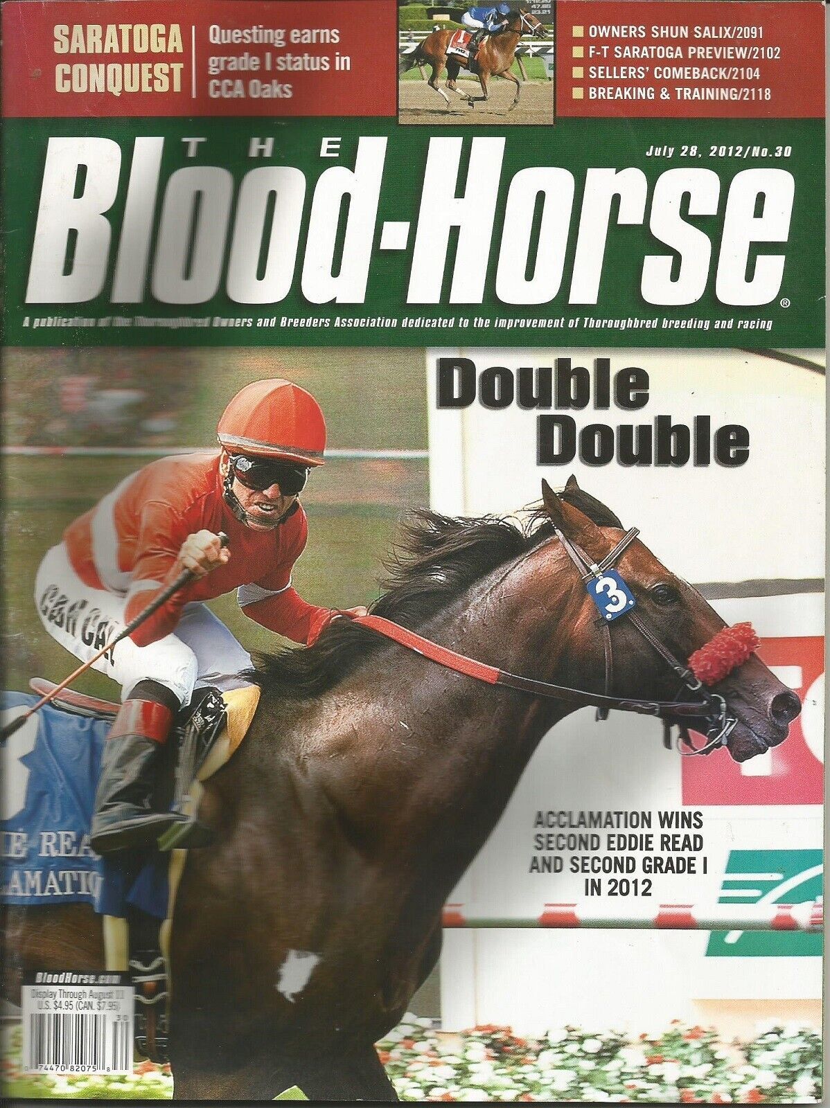 2012 - July 28th Issue of Blood Horse Magazine - ACCLAMATION on the cover