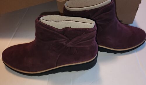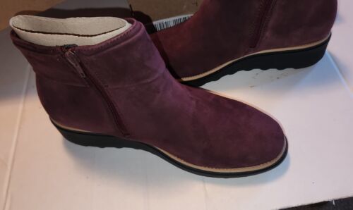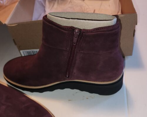 NIB New Clarks Womens Shoes Sharon Salon 9.5 Suede Burgundy Ankle Boot Sid Zip