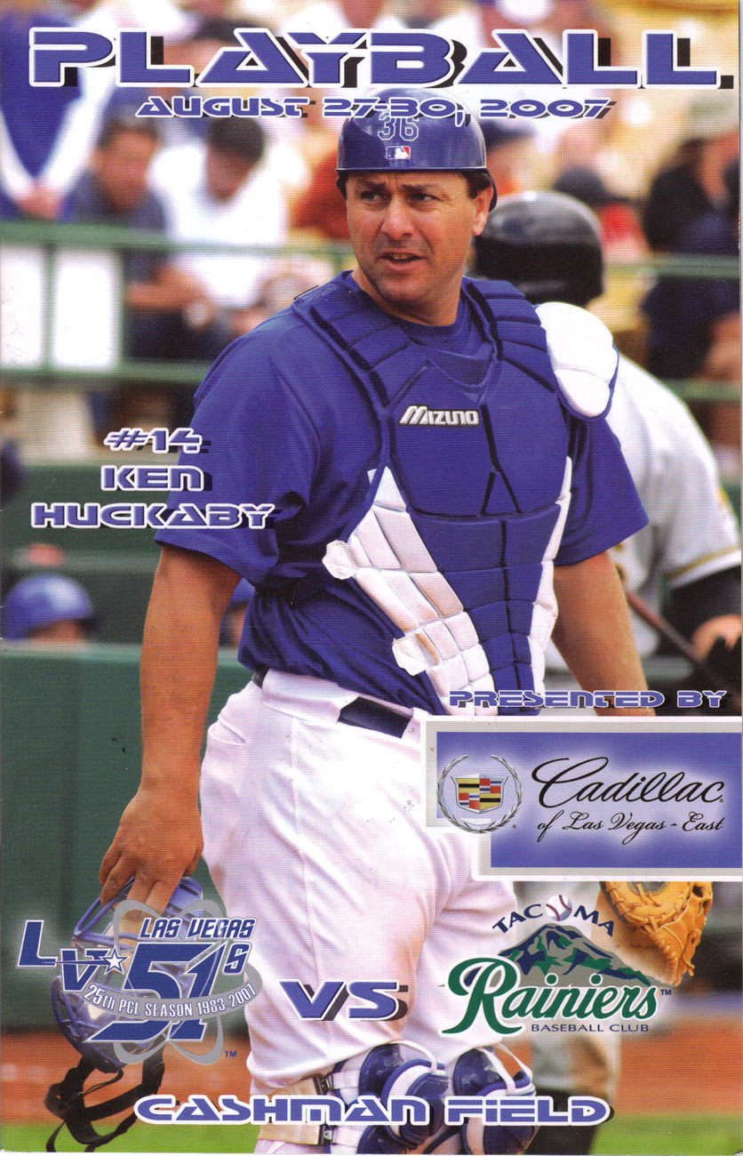 #14 Ken Huckaby is featured cover of Aug 27-30 2007 issue of Payball, publication presented by Cadillac of Las Vegas - East, held in Cashman Field, Las Vegas, NV.