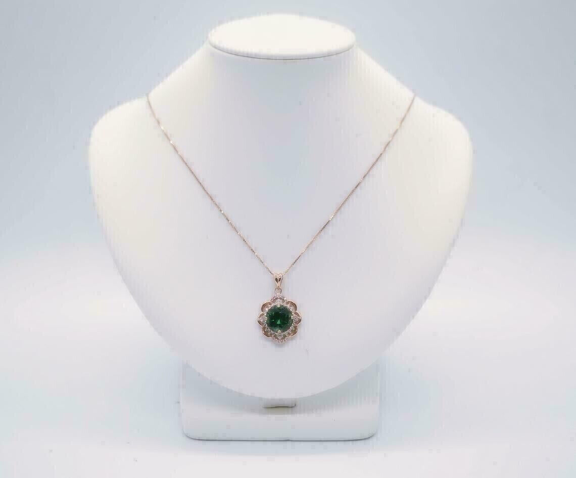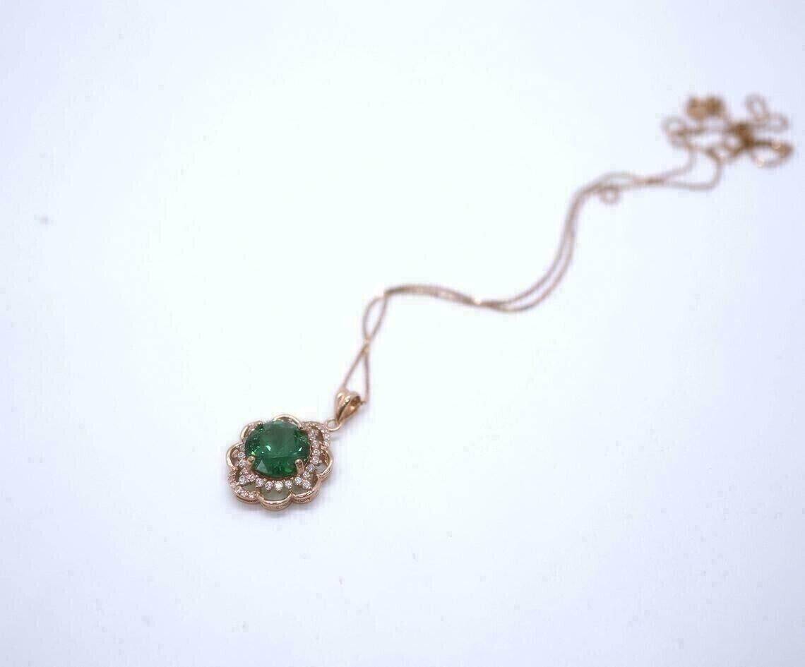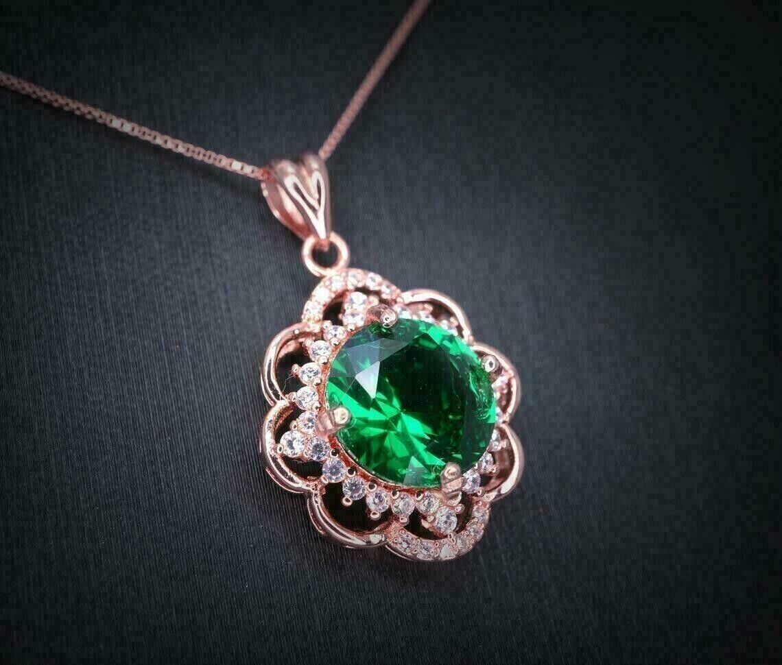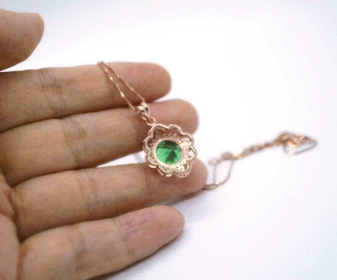 2.0Ct Round Cut Simulated Green Emerald Solitaire Pendant 14k Rose Gold Plated