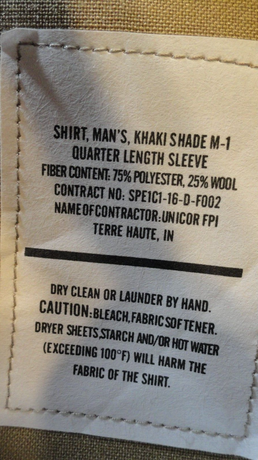 Men's Shirt Khaki Shade M-1 Quarter Length Sleeve Uniform Regulation Size 15 1/2
