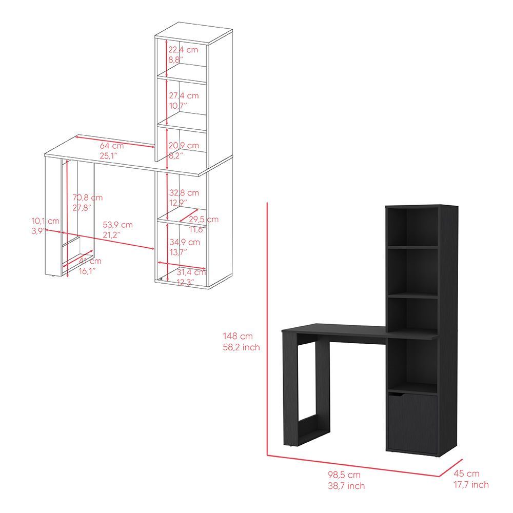 One of the standout features of this captivating desk is the integrated four-tier bookcase (12.2"W), providing ample space for storing and displaying your reference materials, binders, and decorative items. This unique design element keeps your workspace organized and adds a touch of sophistication to your office environment.