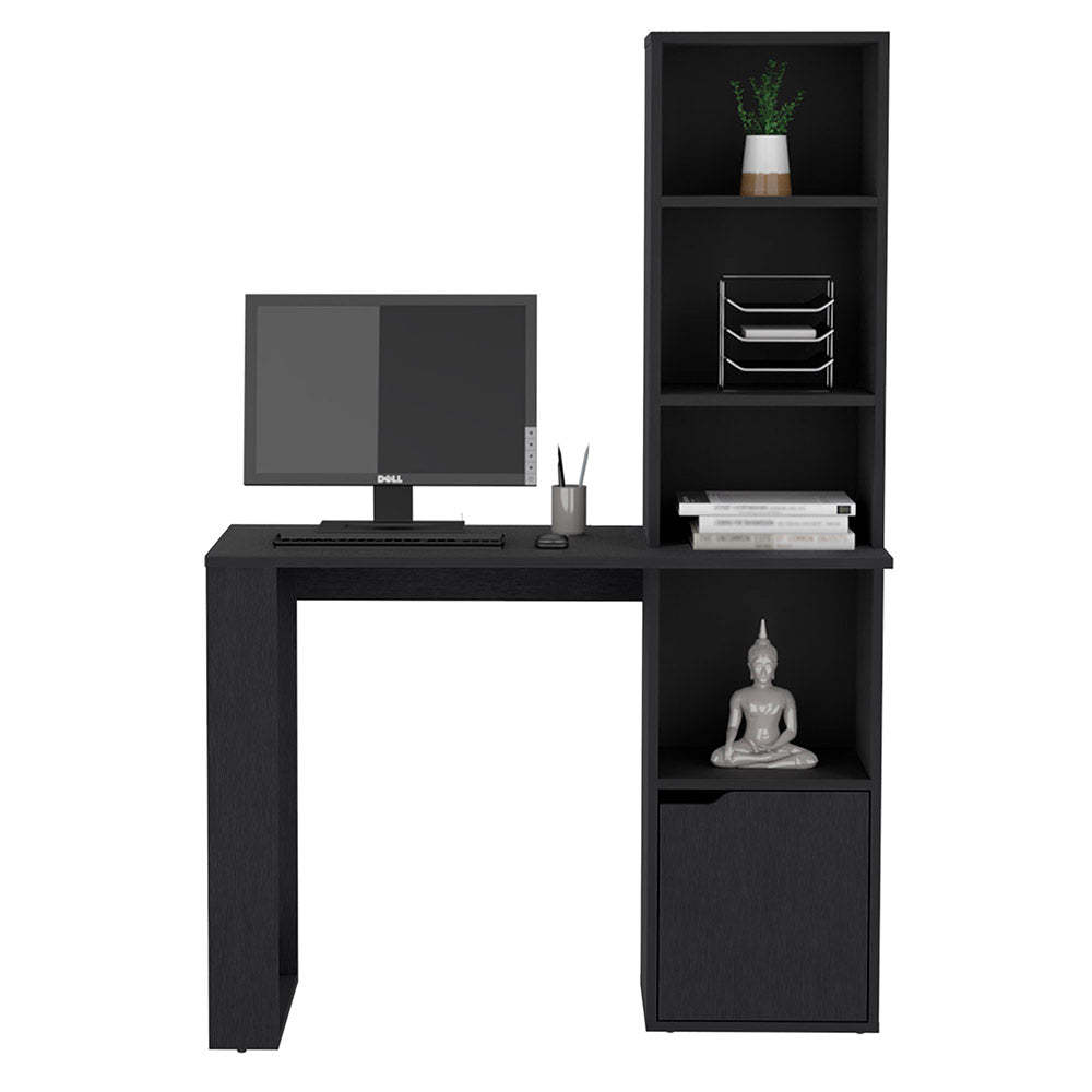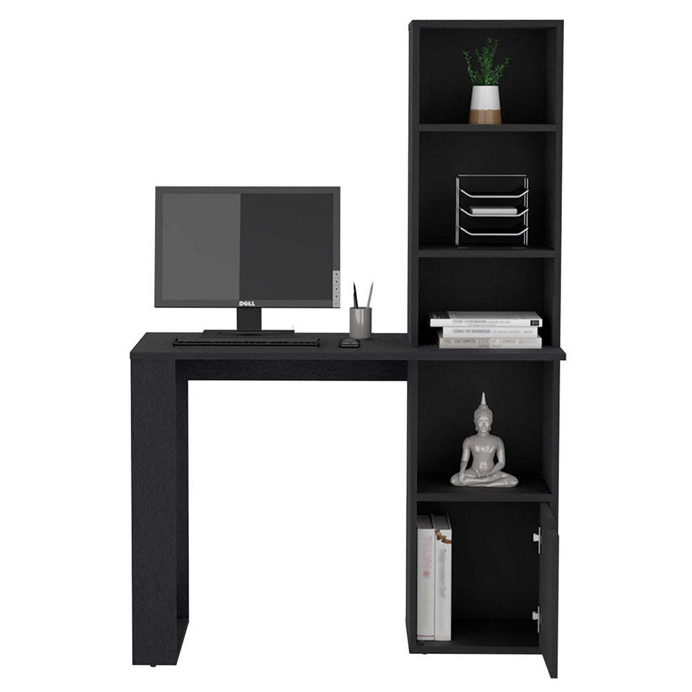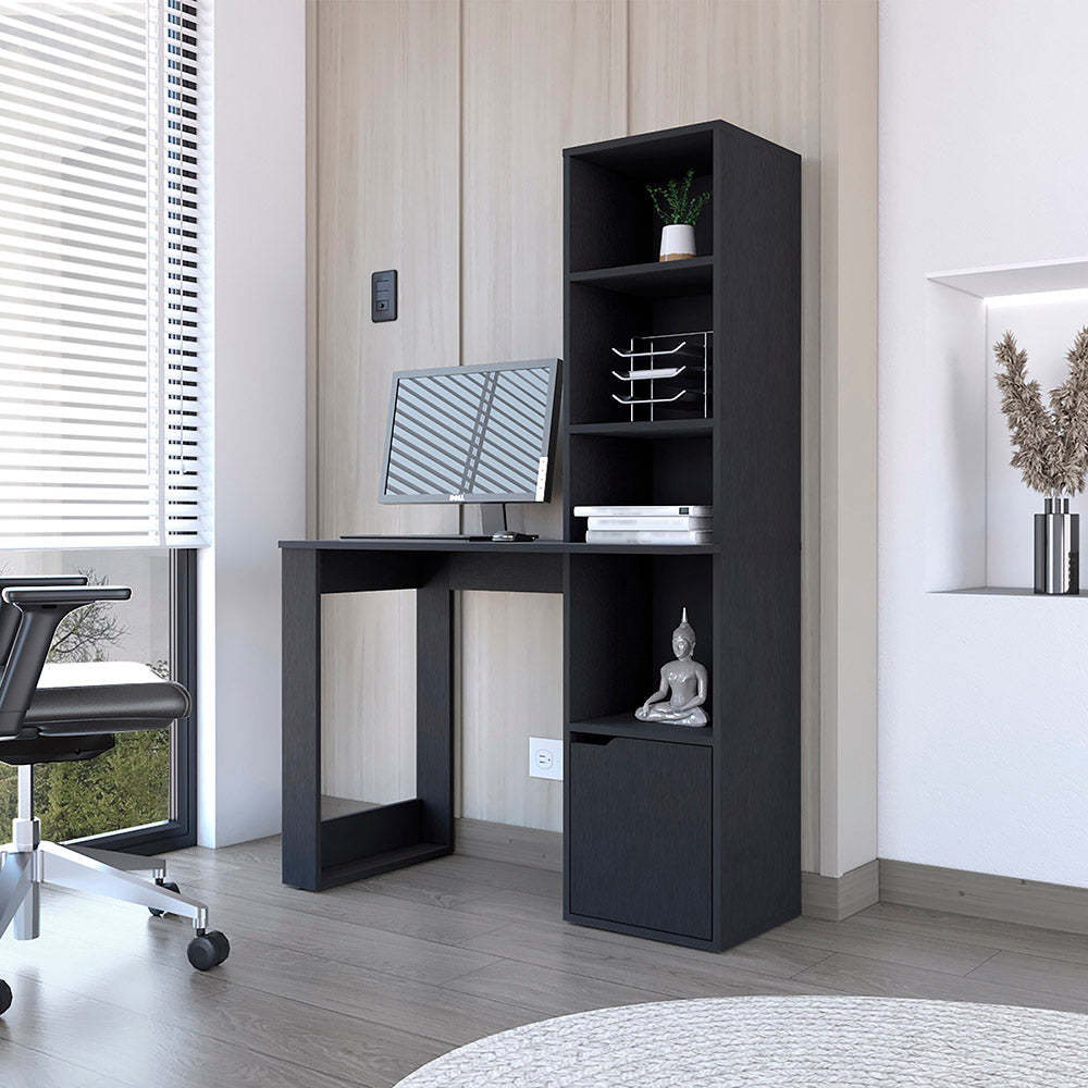 Nestled below the bookcase, you'll find a convenient lower cabinet with a door (13.7"H x 12.3"W), offering discreet storage for office supplies or personal belongings. This thoughtful addition helps maintain a clutter-free workspace while keeping your essential items within easy reach.
