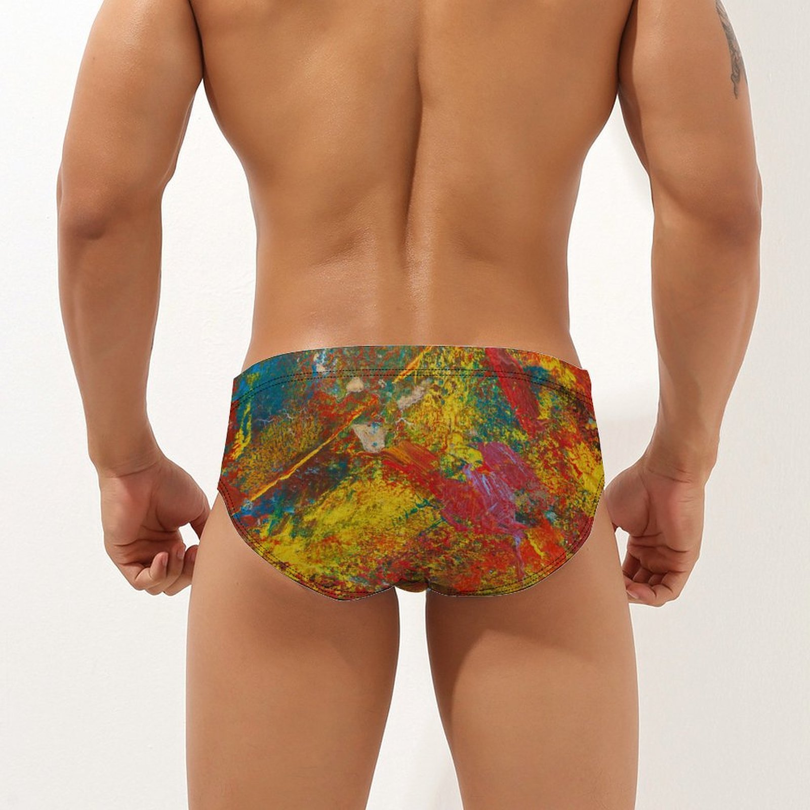 Men swim briefs retro textures grunge underwear for sports swim breathable soft athletic swimwear summer