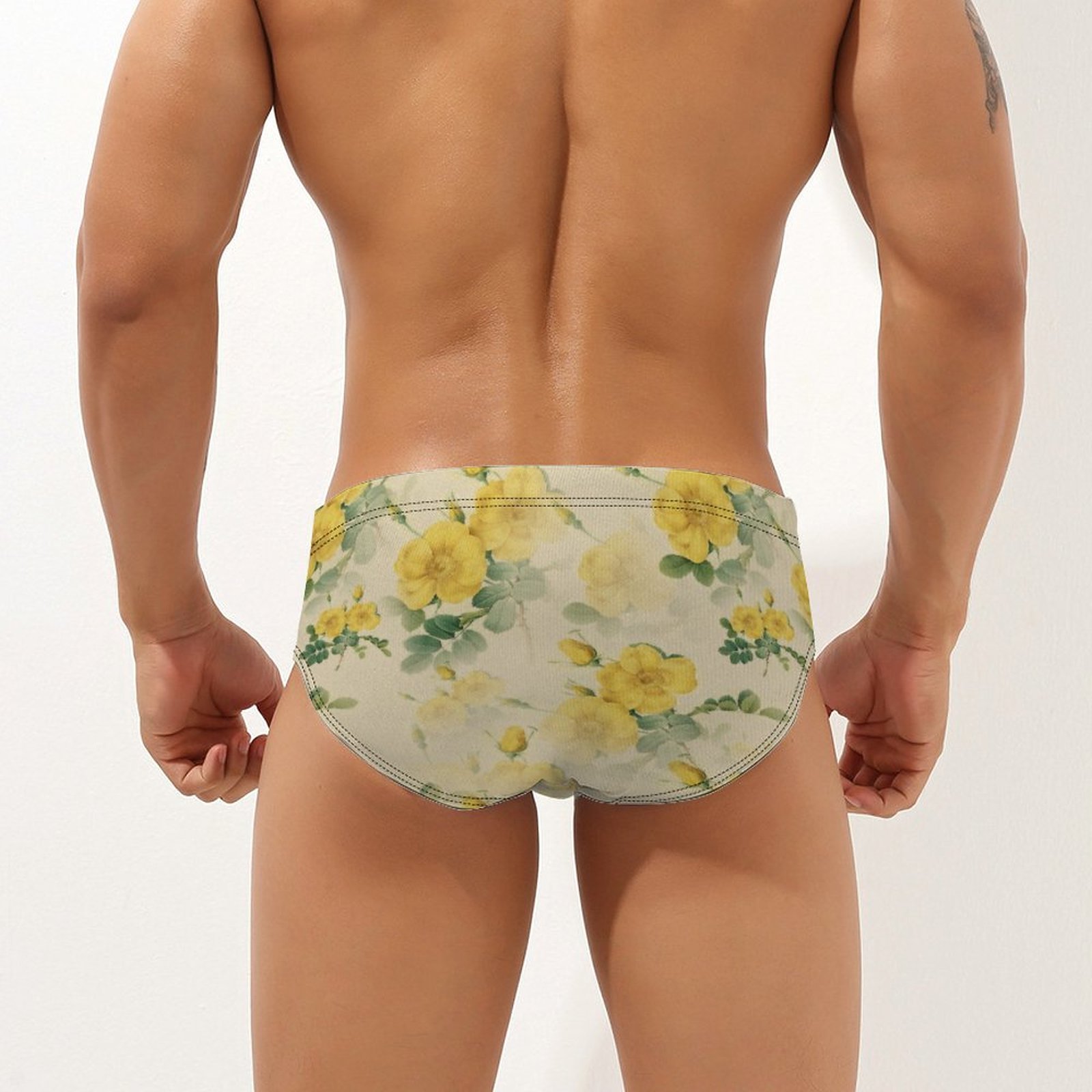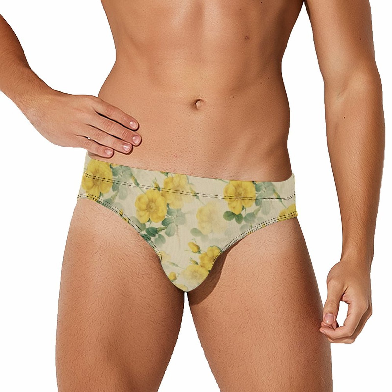 Men swim briefs classic floral yellow vintage flowers underwear for sports swim breathable soft athletic swimwear summer