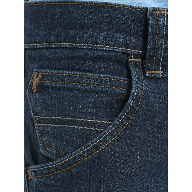 These straight leg boys' jeans from Wrangler are the perfect fit for any activity. Little boys' sizes 4-7 have a zip-fly with snap closure and adjustable waistband. Featuring flex for comfort, these jeans are made to move.