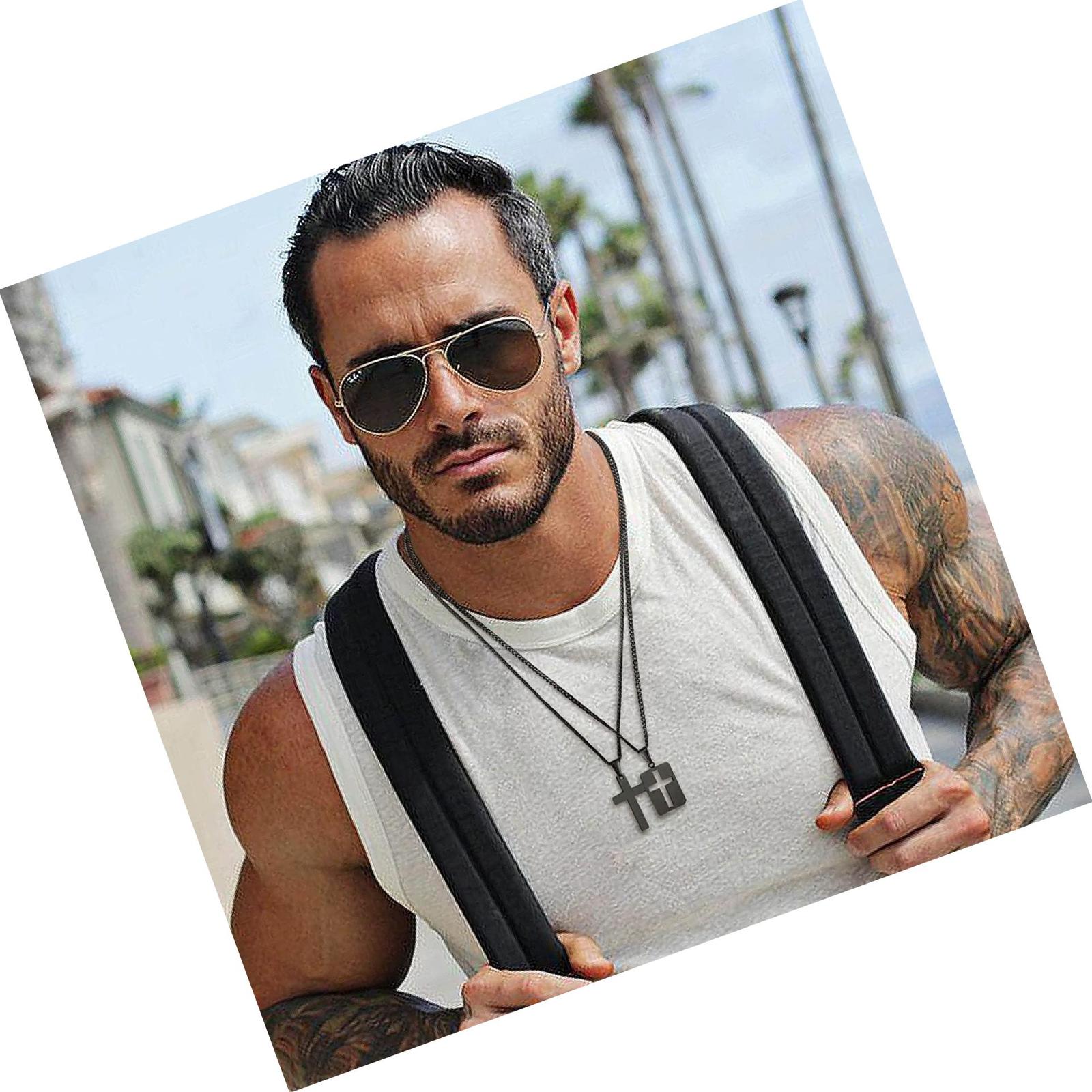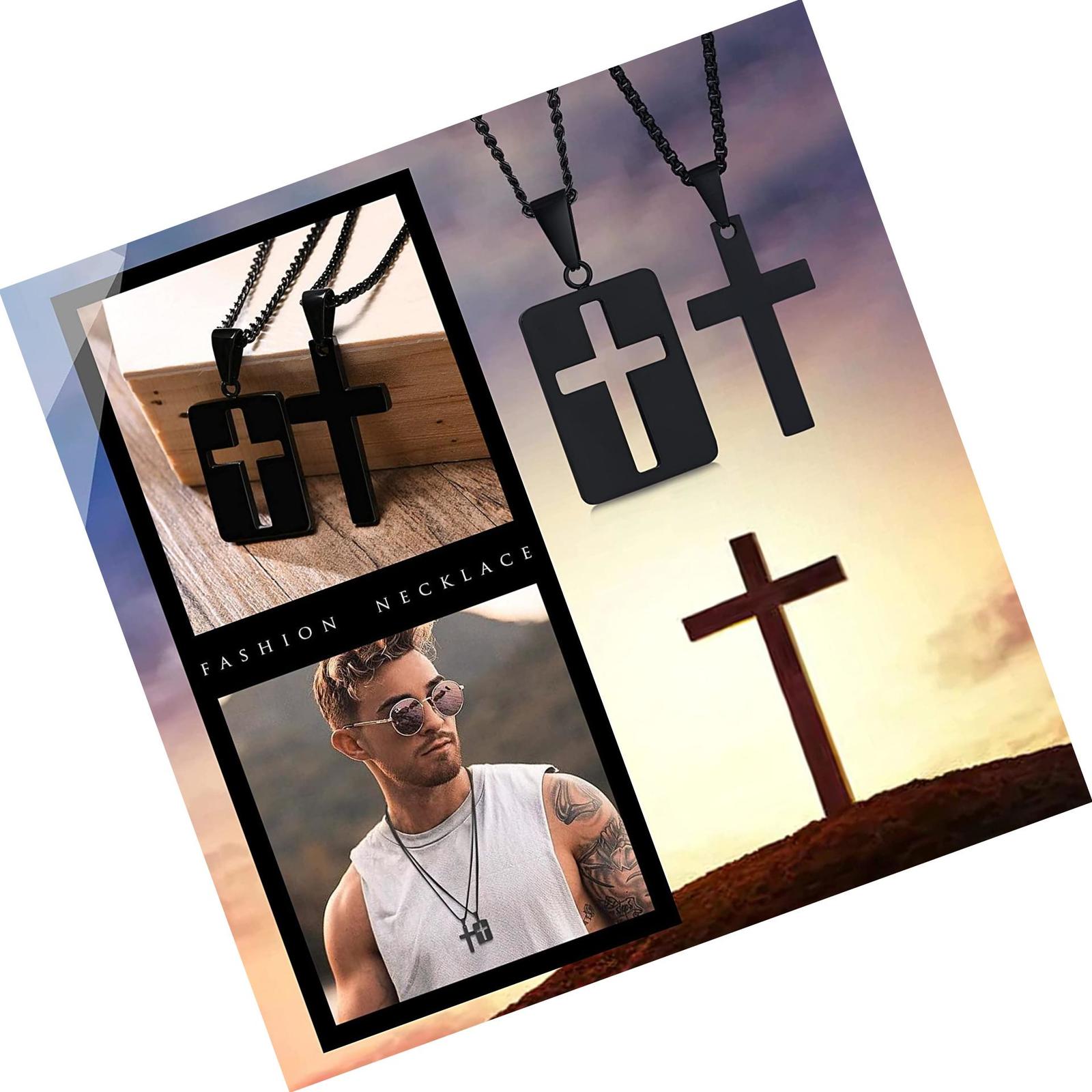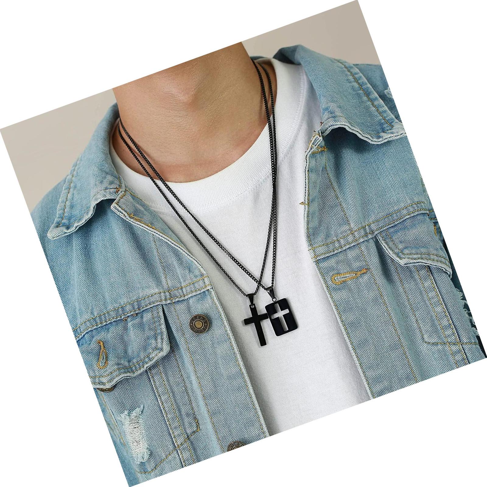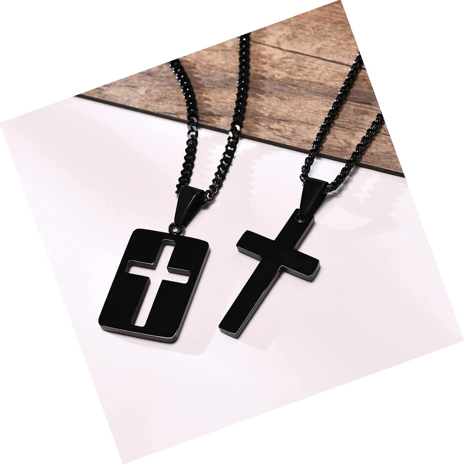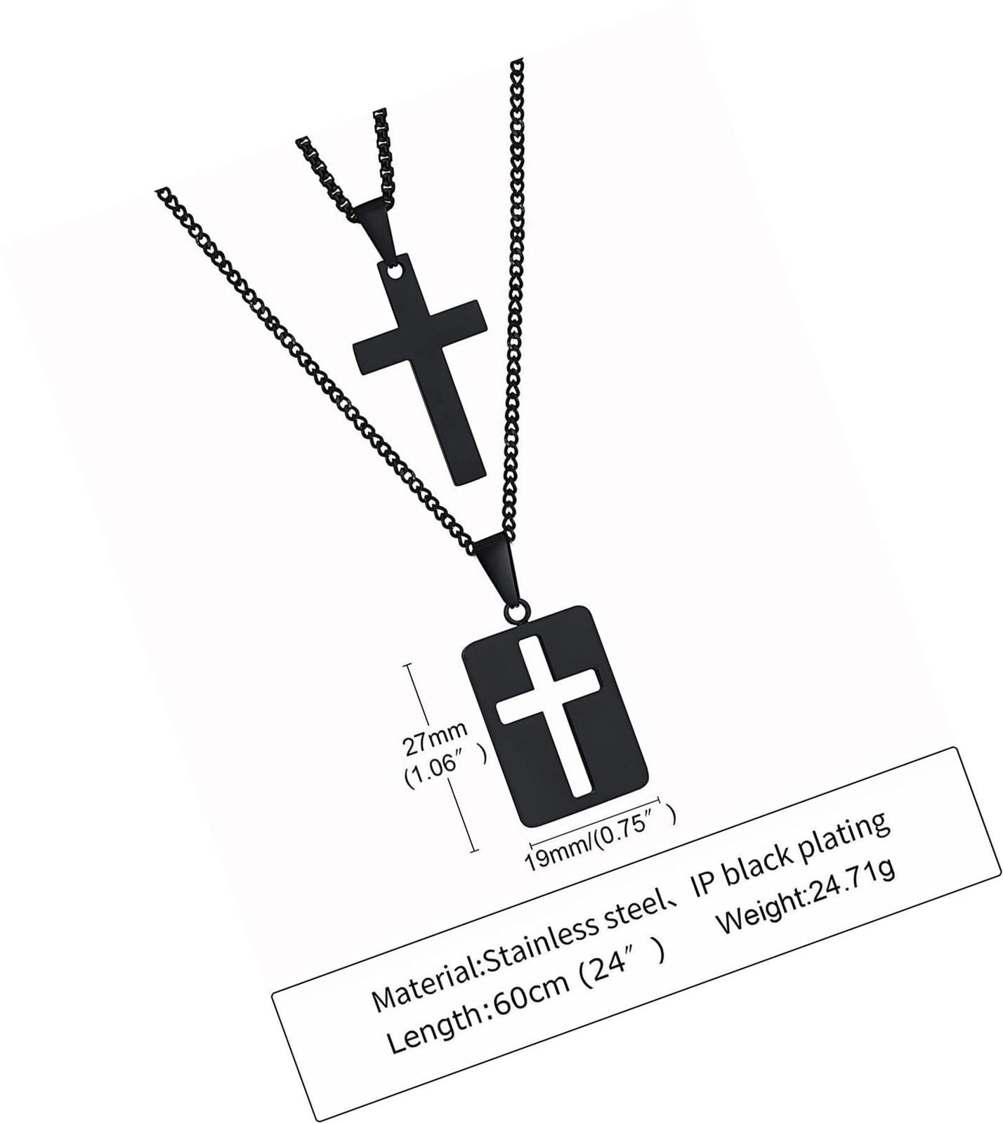 Cross Necklace for Men Women : 2Pcs Silver Black