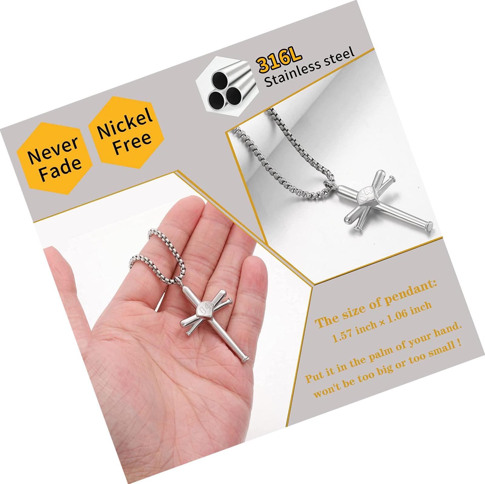 Baseball Necklace for Men,Sports Baseball Cross Pendant with