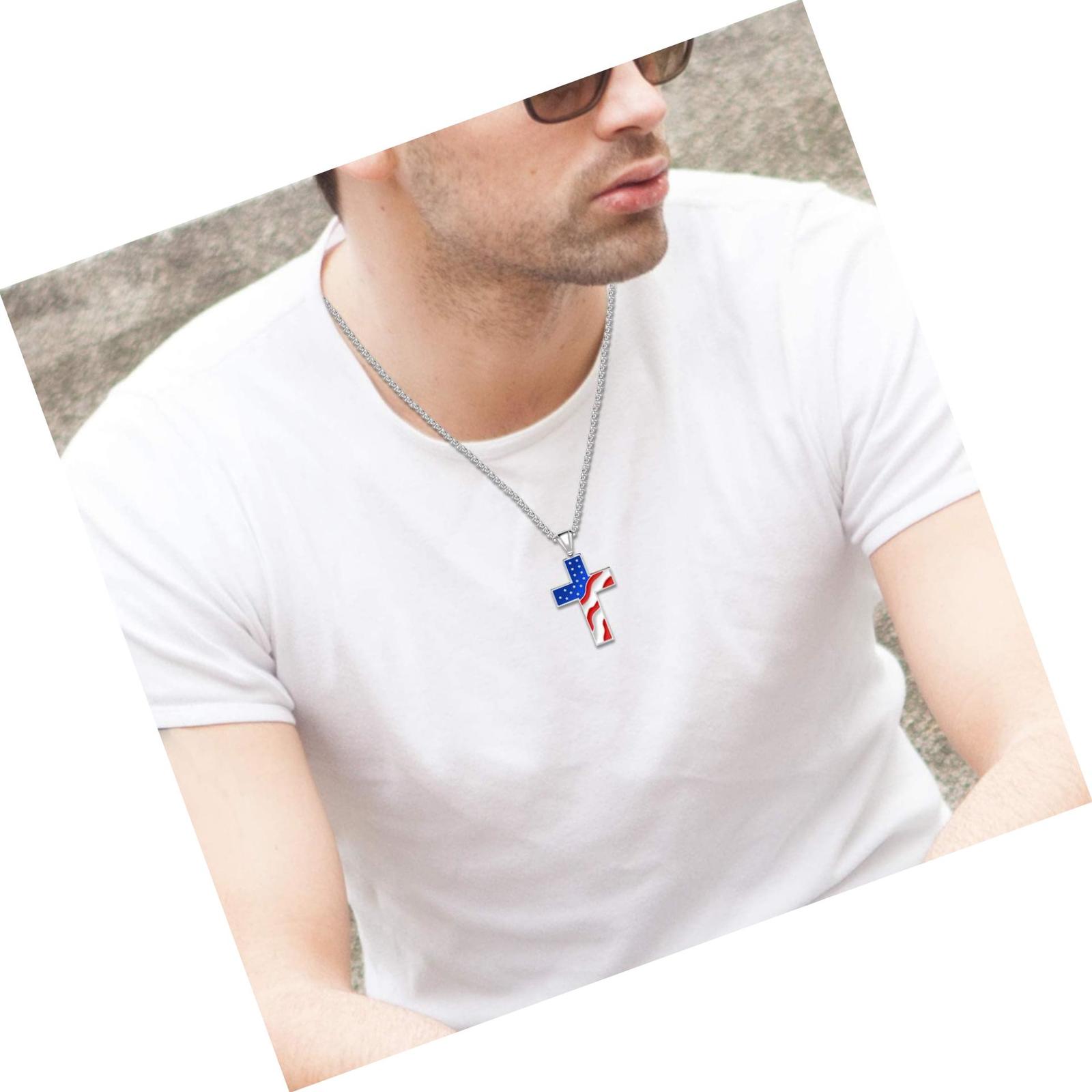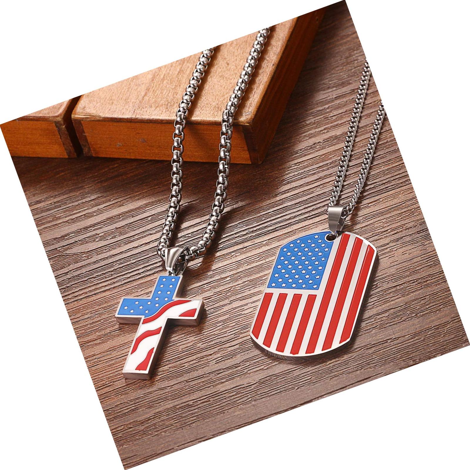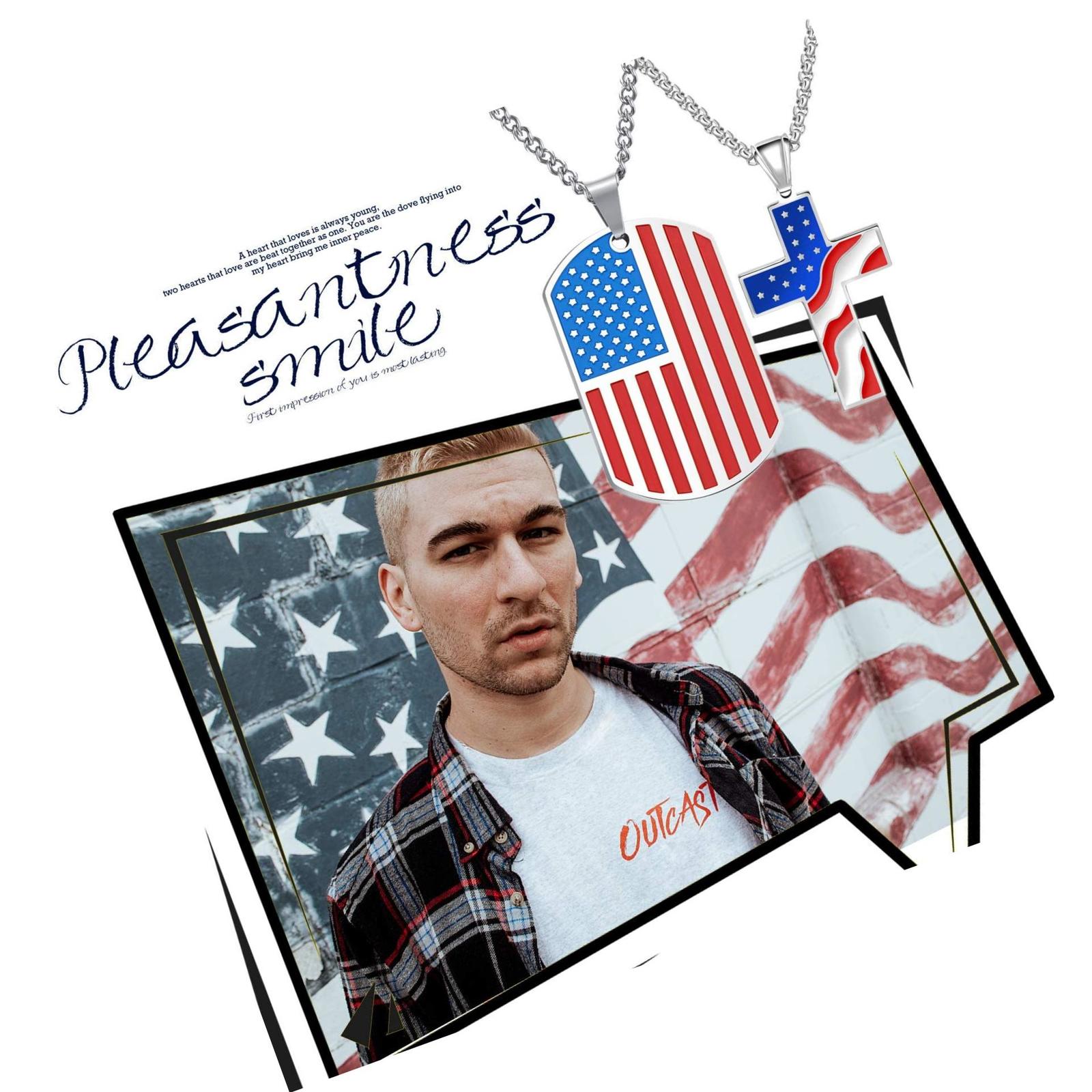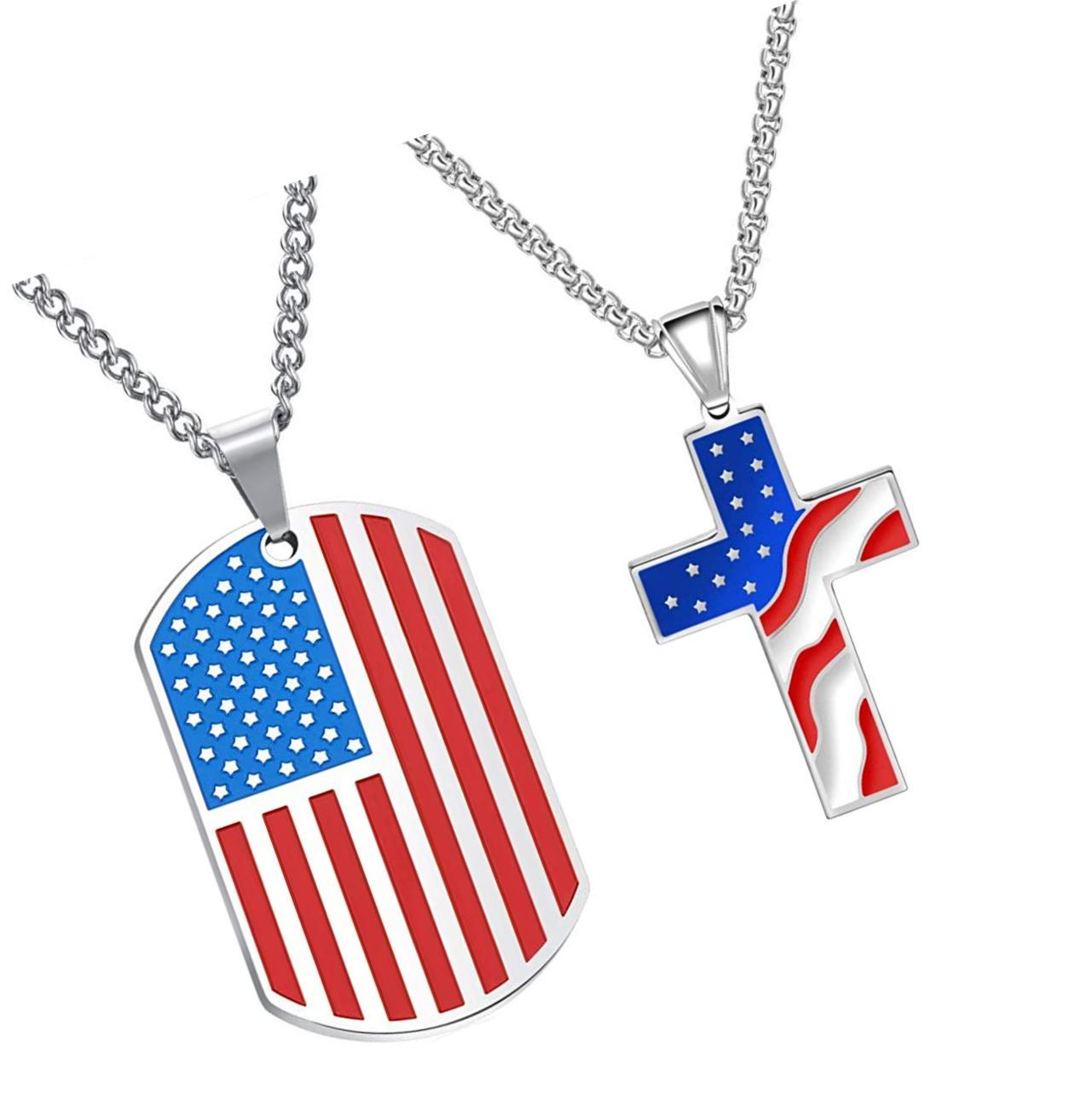 2pcs American USA Flag Patriotic Cross Dog Tag Set