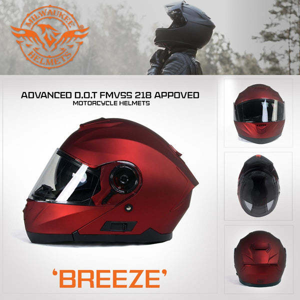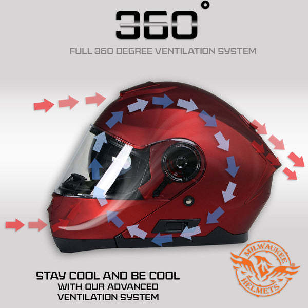 Milwaukee Helmets MPH9817DOT 'Breeze' Red Advanced Motorcycle Modular Helmet for Men and Women Biker w/ Drop Down Visor