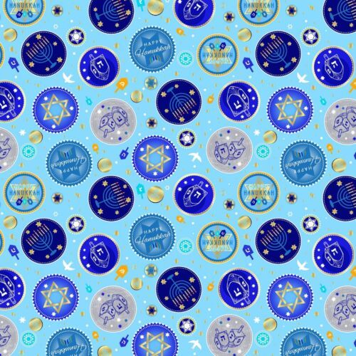 Cotton Star of David Hanukkah Snowflakes Love Light Winter Stars Blue Cotton Fabric Print by the Yard (1649-28794-B)