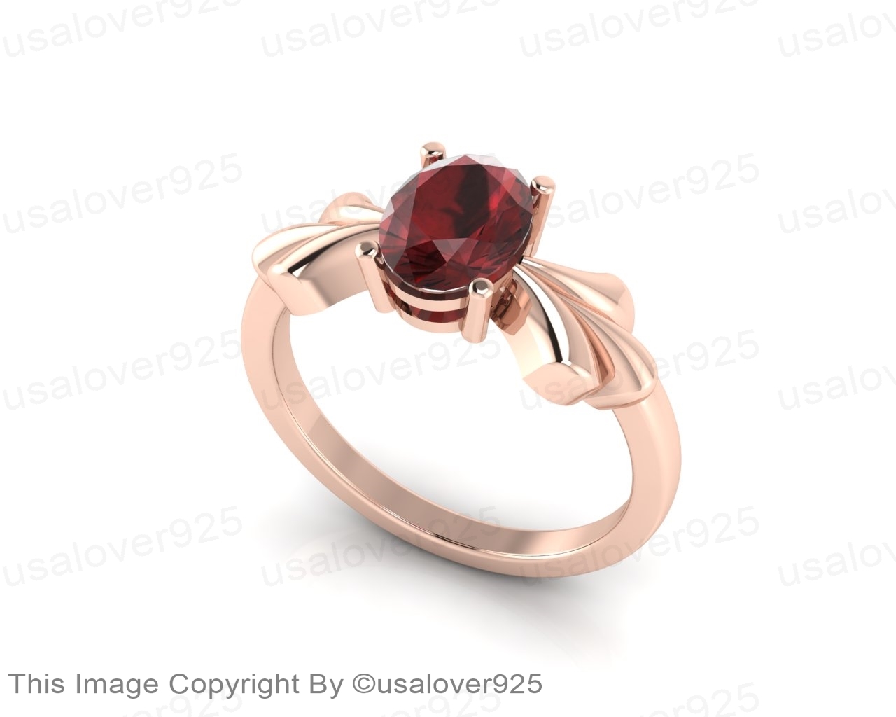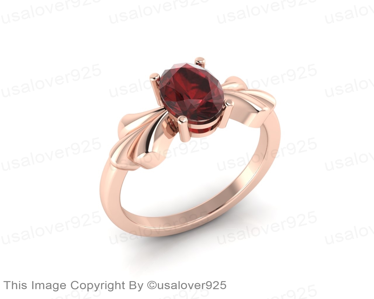 Natural Red Garnet Oval Gemstone Sterling Silver Handmade Women Band Ring