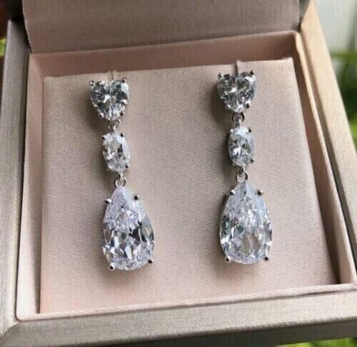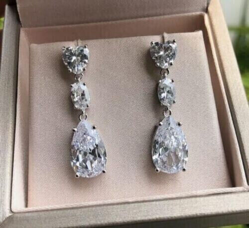 5Ct Pear Cut Simulated Moissanite Drop Dangle Earrings 14K White Gold Plated 925