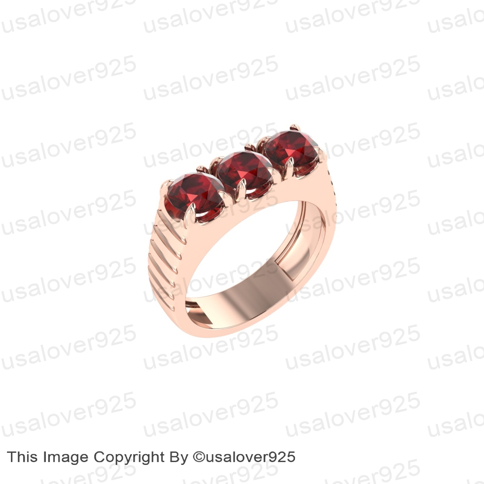 Natural Red Garnet Round Gemstone Sterling Silver Handmade Unisex Ring Jewelry