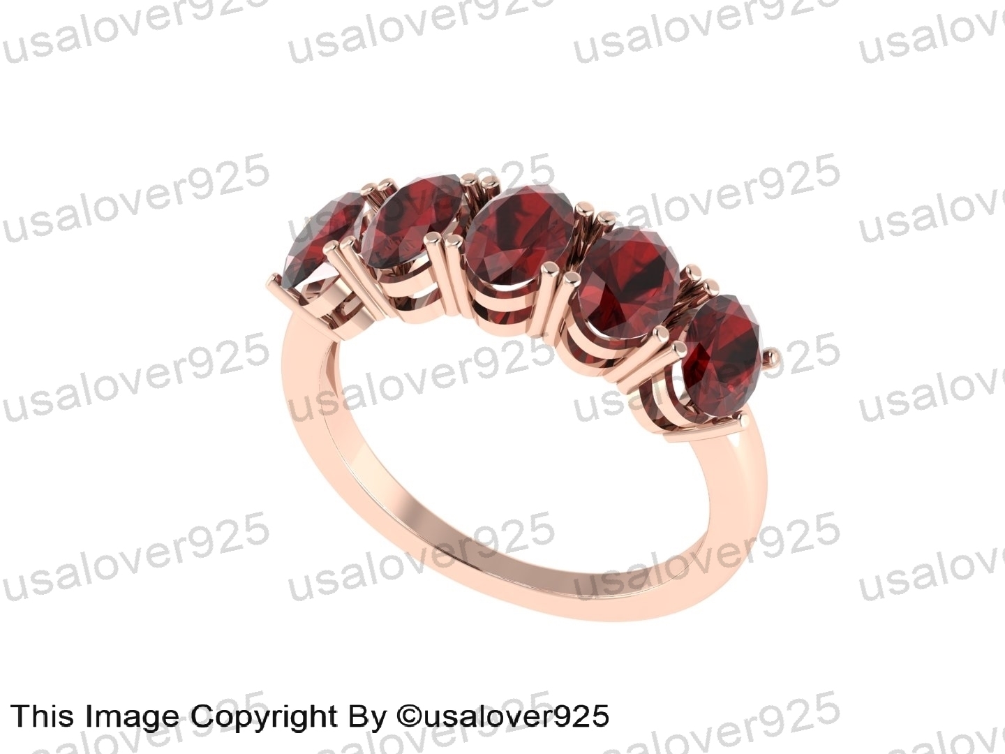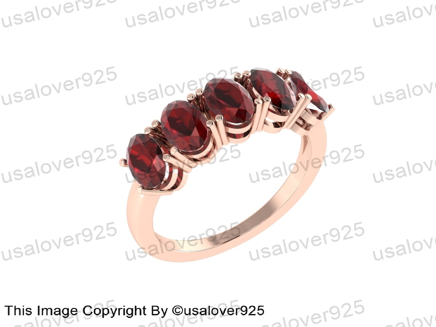 Natural Red Garnet Oval Round Gemstone Sterling Silver Handmade Women Ring