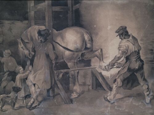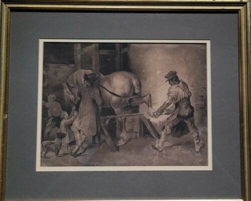 Rosa Bonheur Antique Original Farm Horse Painting Gouache Drawing Signed