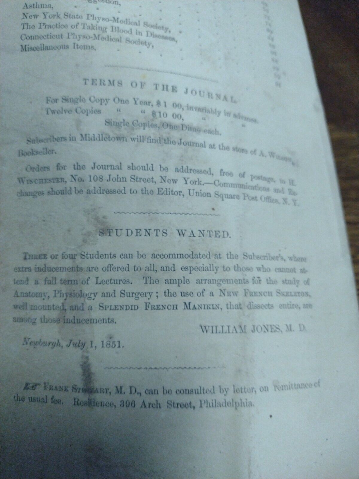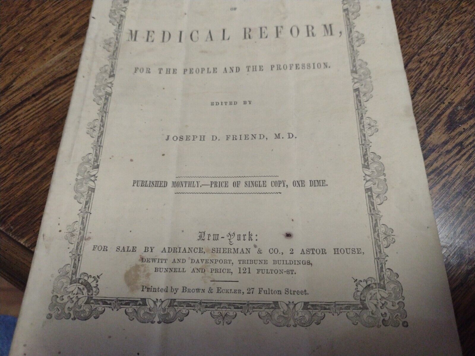 OLD American Journal of Medical Reform BOOKLET 1851 Joseph D. Friend Medicine