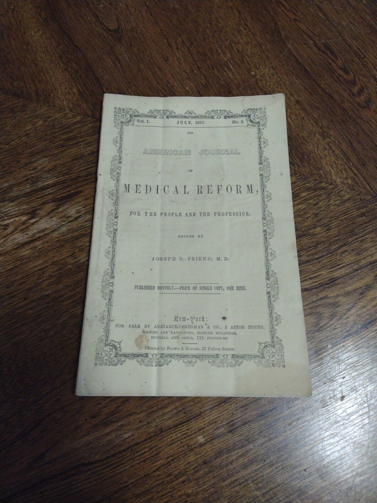 OLD American Journal of Medical Reform BOOKLET 1851 Joseph D. Friend Medicine.