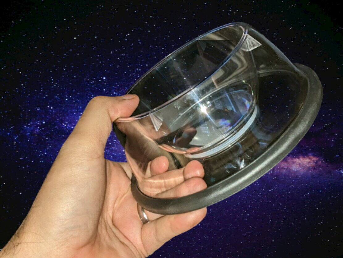 Flat with non-skid rubber bottom. Clear so you can see the bottom image at any angle.