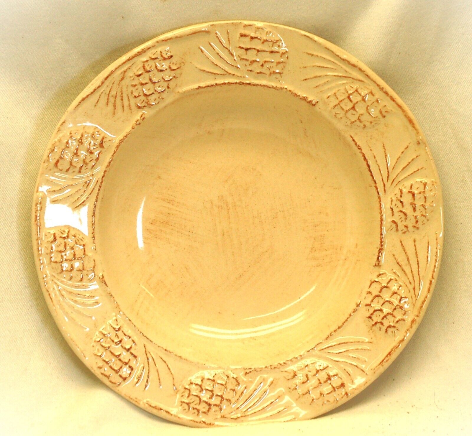 Holiday Pine Cone Cream Home Rim Soup Bowl Cream Background Embossed Pinecones