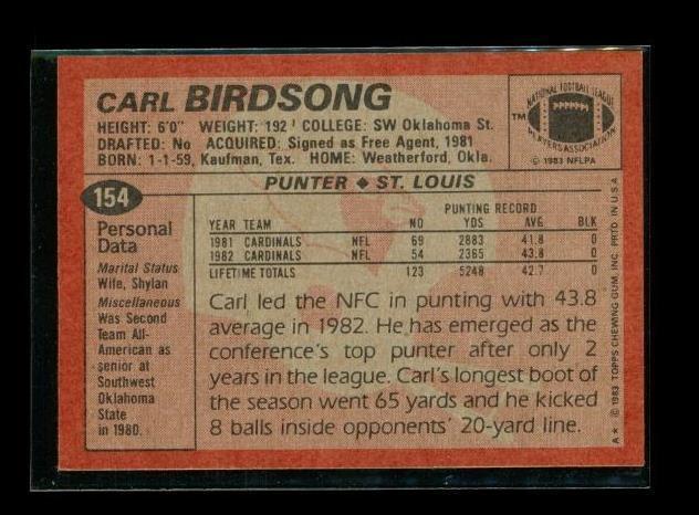 Vintage 1983 TOPPS Football Trading Card #154 CARL BIRDSONG St Louis Cardinals